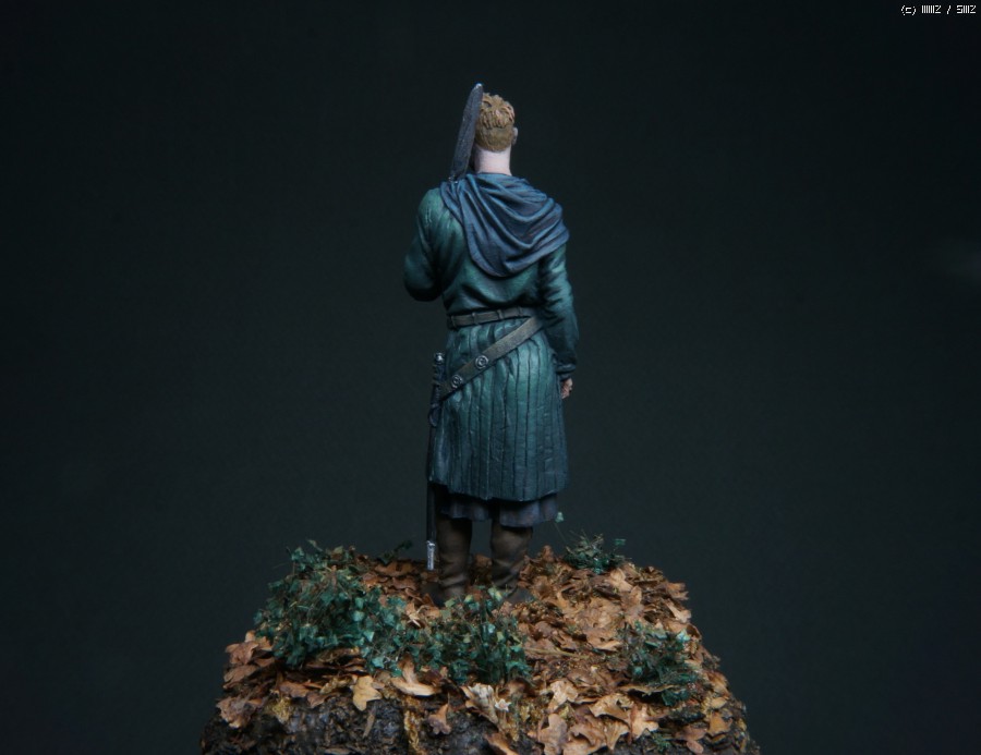 스산한 가을 숲속의 분위기를 내고자 전체적으로 블루를 모두 첨가해서 의도적으로 창백한 색을 만들어 사용했습니다. 낙옆은 허드슨앨런사의 제품으로 자작나무 씨앗을 말린 낙엽재료에 잡풀찌꺼기, 잔뿌리등이 뒤섞여 있어서 이것만 깔아주어도 충분히 볼륨감 있는 지면 표현이 가능합니다. 듬성듬성 보이는 파란색 풀은 미니네이쳐사 제품입니다.