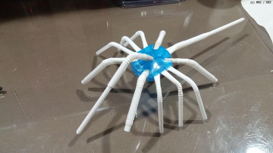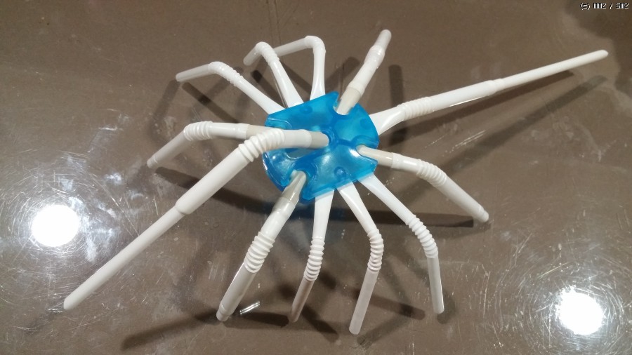 pc방 작은 간판 뒷면 부품으로 몸통을 만든뒤 빨대로 다리를만들어 주었습니다.