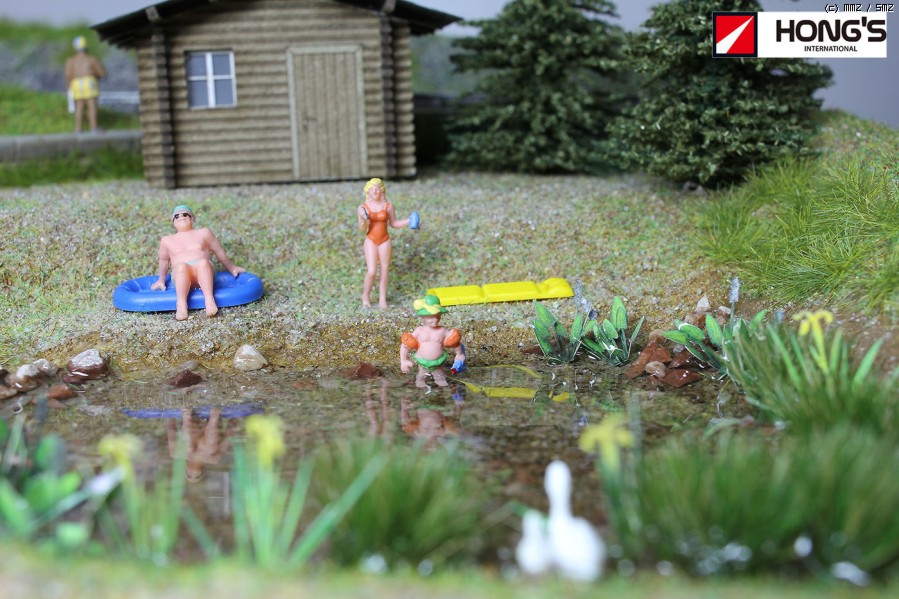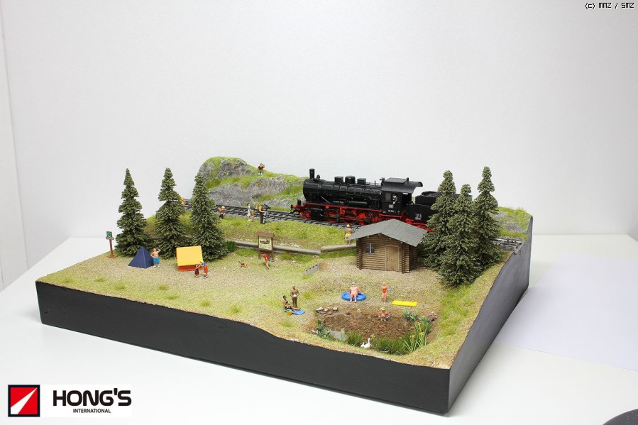 캠핑을 소재로 제작한 디오라마 입니다. 캠핑하는 사람들, 호수에서 물놀이하던 아이와 백조 가족의 만남이 메인테마 입니다.동적요소인 기차를 포함 여름의 모습을 작은 베이스에 담아보았습니다. ^^