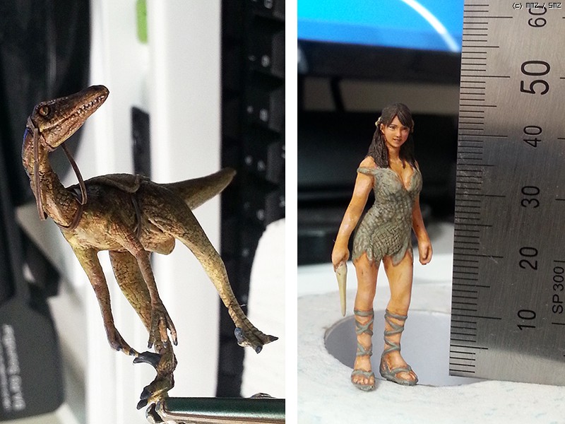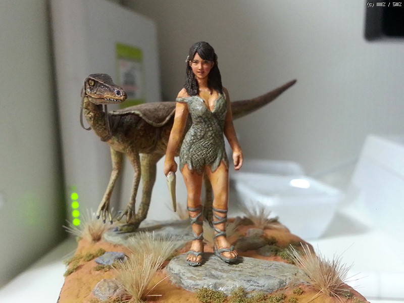 축소복제한 머리, 보틀캡 피겨, 타미야 랩터 등을 짜집기 하여 개조 했습니다.