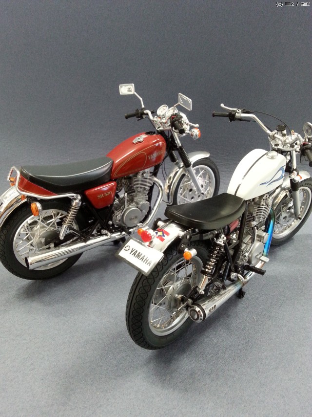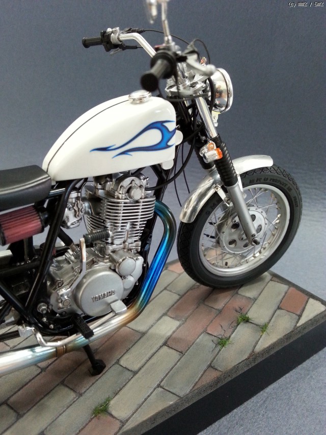 아오시마에서 출시한 야마하 SR-400 1995 커스텀버전으로 제작해 보았습니다. 일반형은 sr-500(1998)으로 일전에 제작한적이 있는데,빈티지 분위기 야릇하게 묻어있는 모양새가좋아 하나더 욕심내던중 짙은 그린색의 바디색에 반해 생각없이 구매후 열어보고는