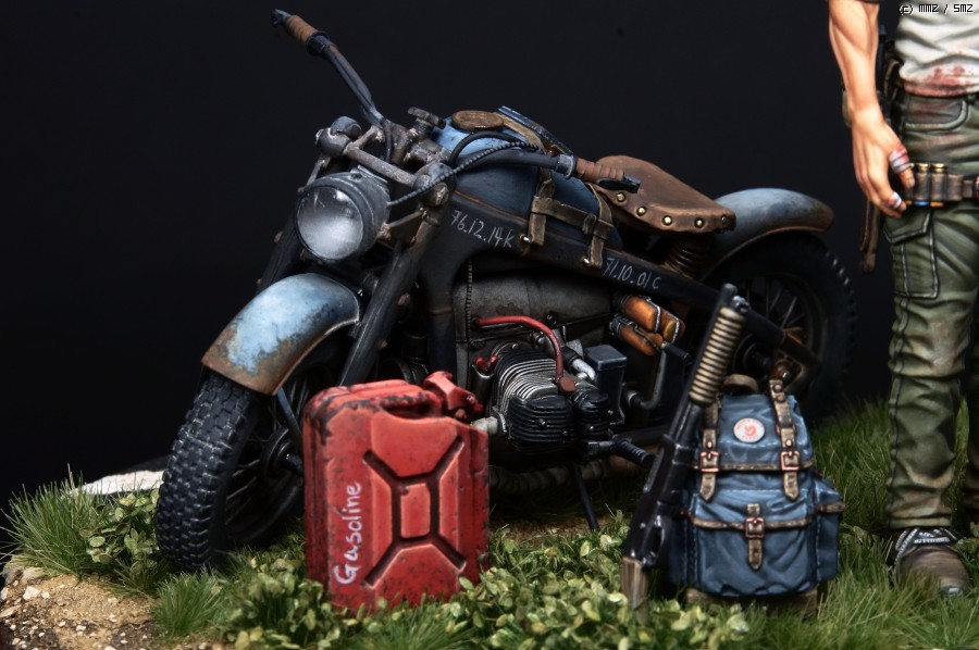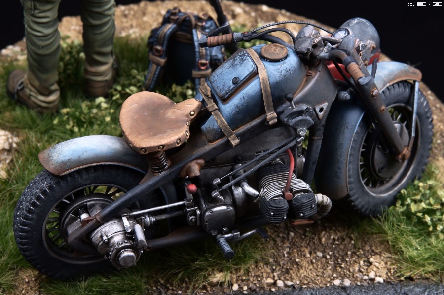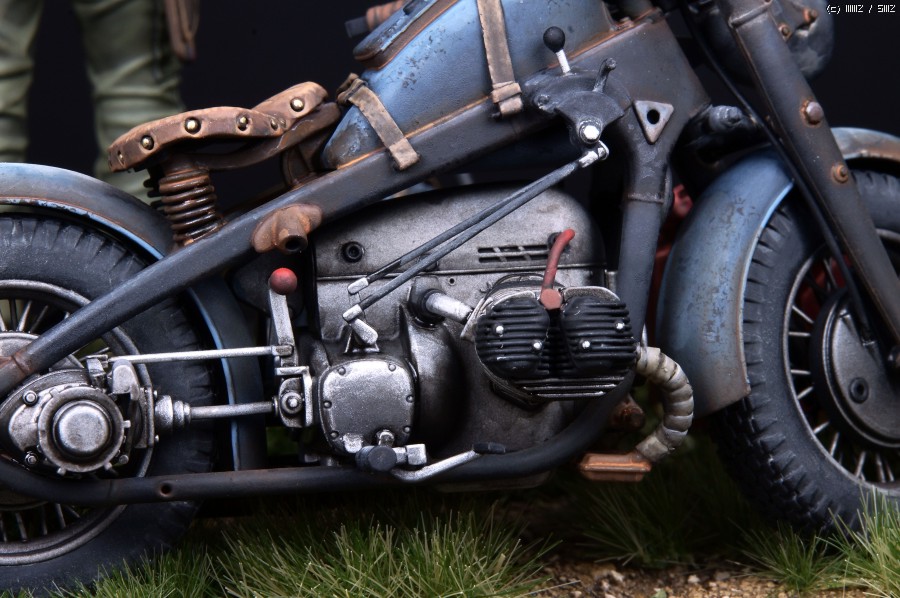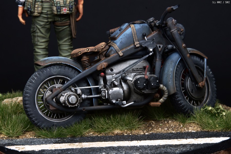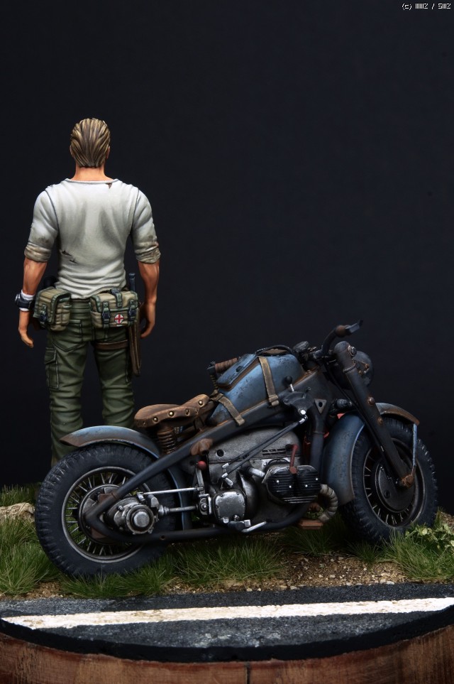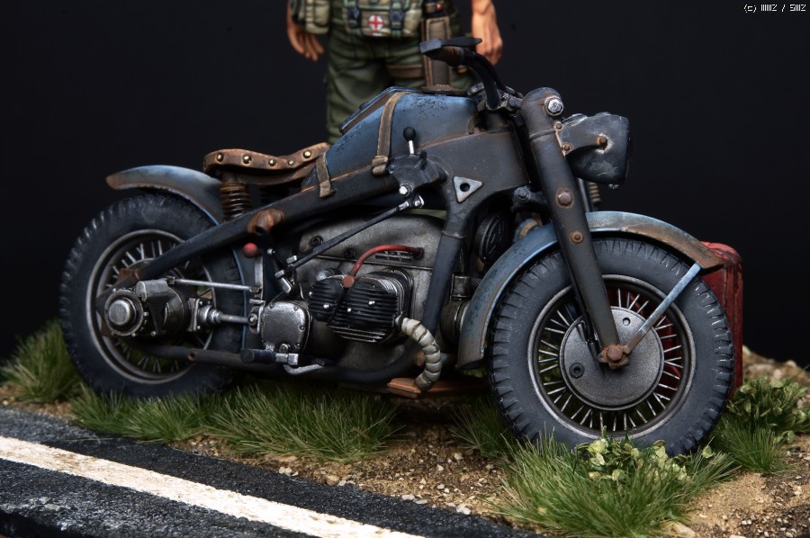 오토바이는 1/24스케일이 귀하고 밀리터리쪽에서는 생소한 스케일이지만 운좋게도 인젝션중 Tasca 제품인 Zundapp 사이드카 를 구할수 있었고 간단한 개조후 도색했습니다.