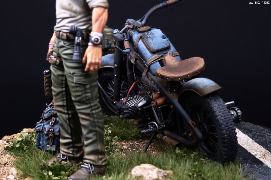 배경에 들어갈 오토바이 컨셉은 빈티지 클래식 바이크를 구상했고 설정상 시대적 배경에 어울리는 낡은 느낌을 원했습니다.
