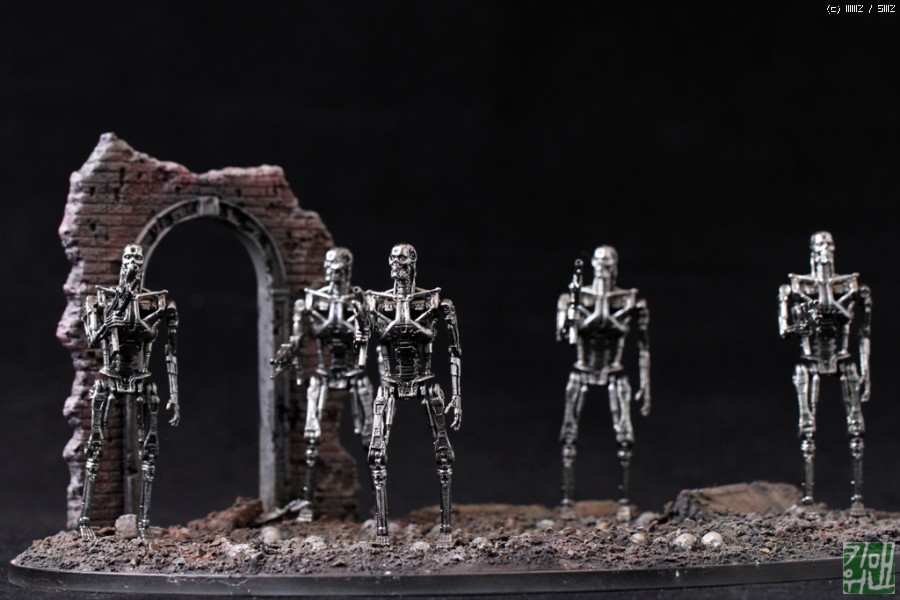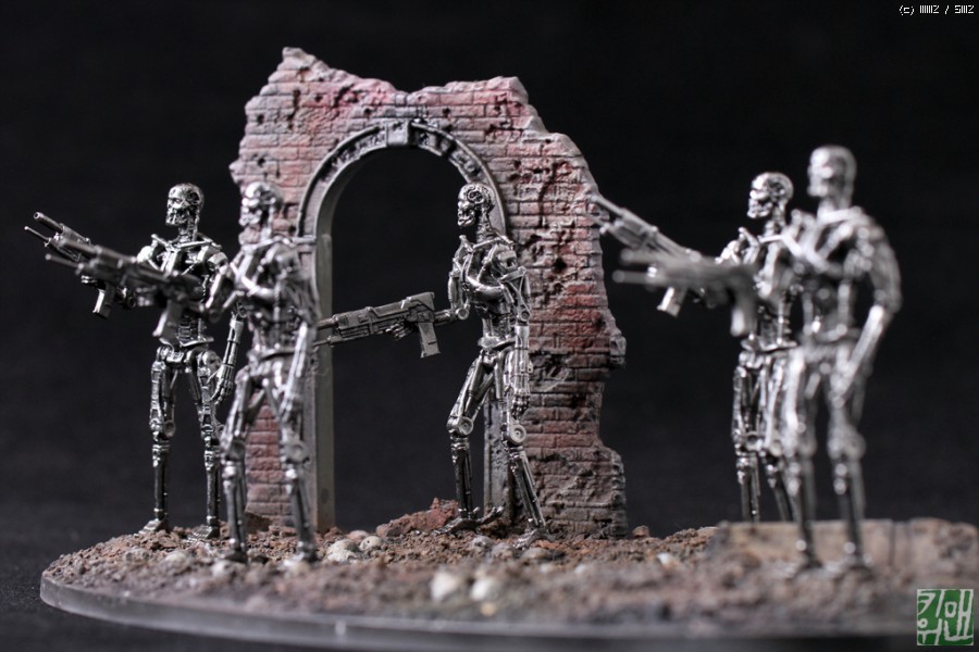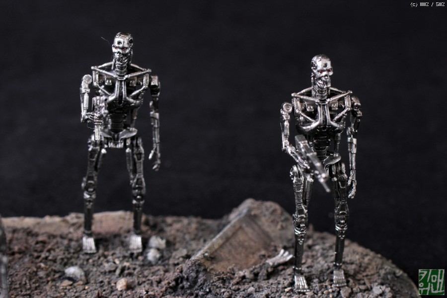 며칠 만에 뚝딱 만들었습니다. T-800은 크롬 도색을 했고 부실한 베이스는 석고 가루를 이용하여 만들어 주었습니다. 최근에 개봉한 영화를 보고 바로 구입해서 만들었습니다.