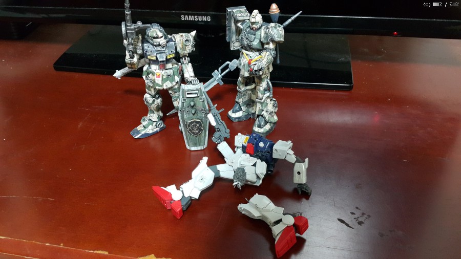 시간이 나면 천천히 작업하려하는데 육전형 건담이 격파되어 있고(아직 미도색) 간단한 베이스를 만들어 비넷으로 만들 생각입니다..
