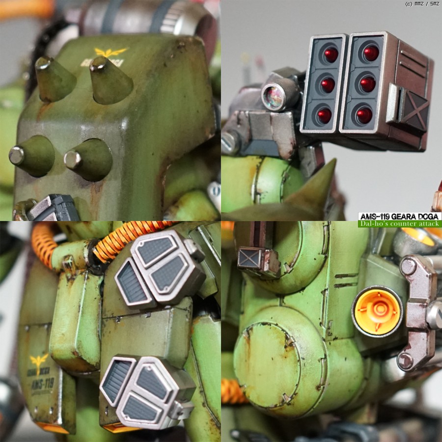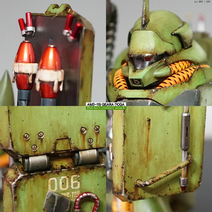 일부 장갑의 찌메리트 코팅 등등 소체의 형태를 방해하지 않는 한도내에서 최대한 밀리터리적인 느낌을 내려 노력해봤습니다.