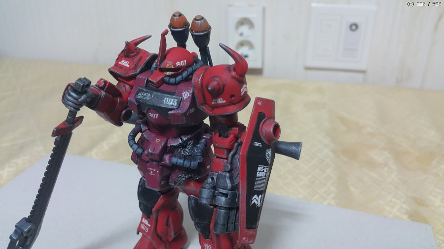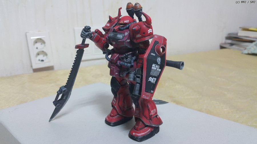 여하튼.. 그냥 컬러링만 바꾸는 건 성의없어 보여 약간의 파손 흔적과 여기저기 무장 및 데칼 짜집기를 추가해 봤습니다 칼이 생각보다 너무커 언밸런스 한 것 같아 아쉽습니다