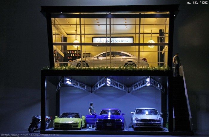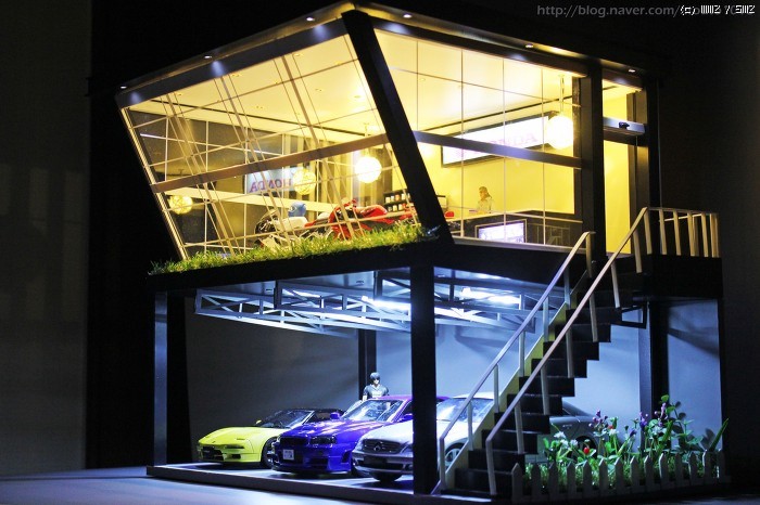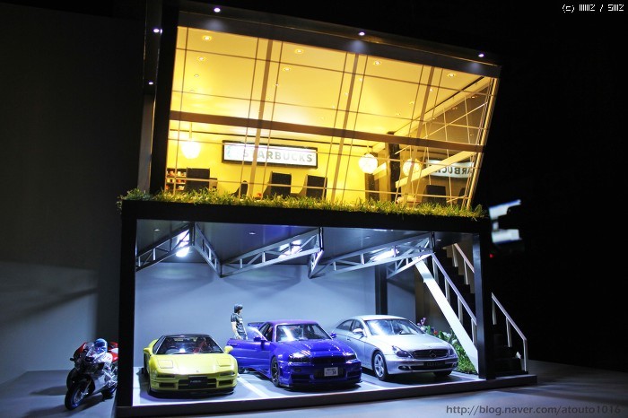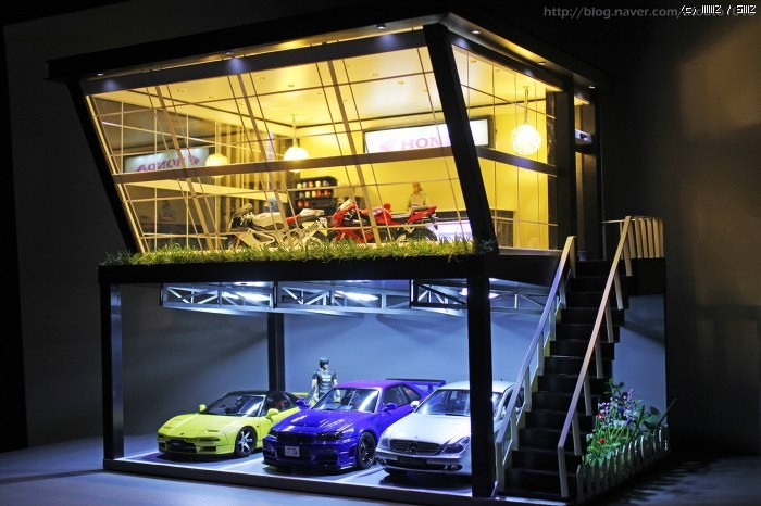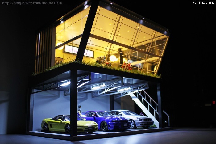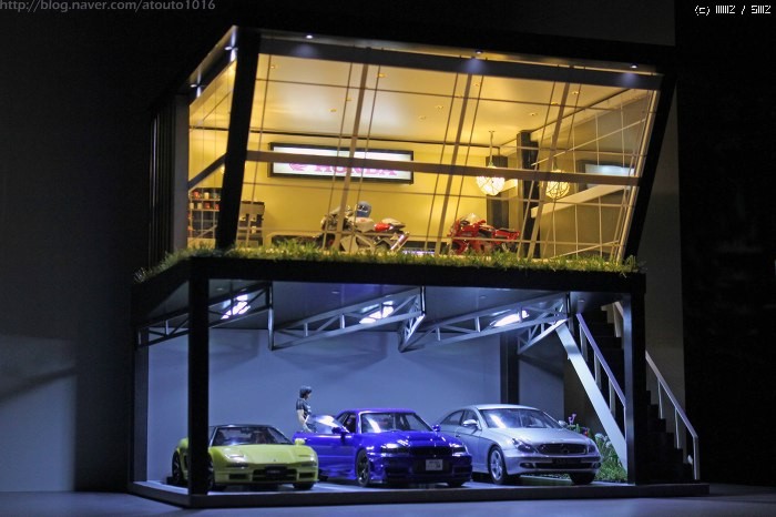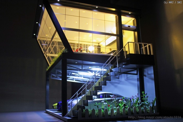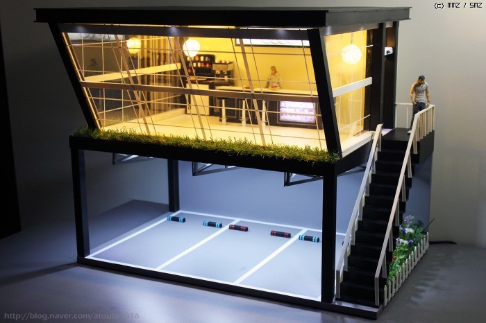 주차장 + 다용도 연출의 2층 디오라마 입니다