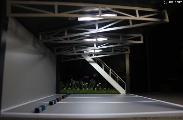 주차장 천장부분에도 프레임의 구조물을 만들어 구성해 보았습니다.