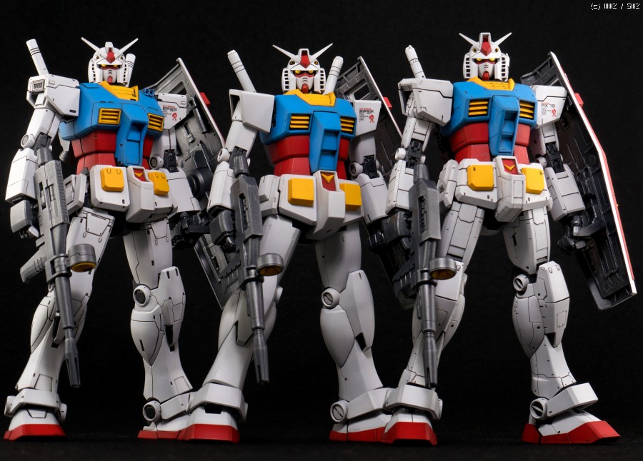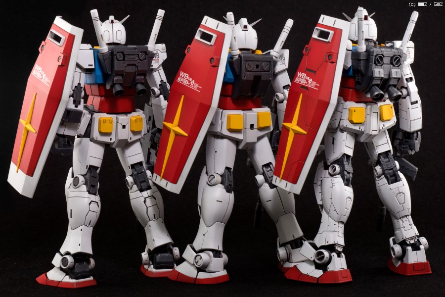 각자 디자인이 다른 퍼스트 건담을 세 마리 만들어봤습니다.