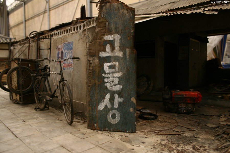 간판은 길에서 주어온 오래된 나무 판을 그대로 사용한 것입니다.