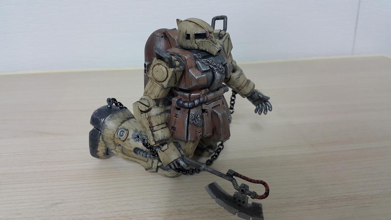 기본소체는 자쿠F2를 사용하였고, 잡종스럽게 보이기위해 자쿠1머리로 교체했습니다
