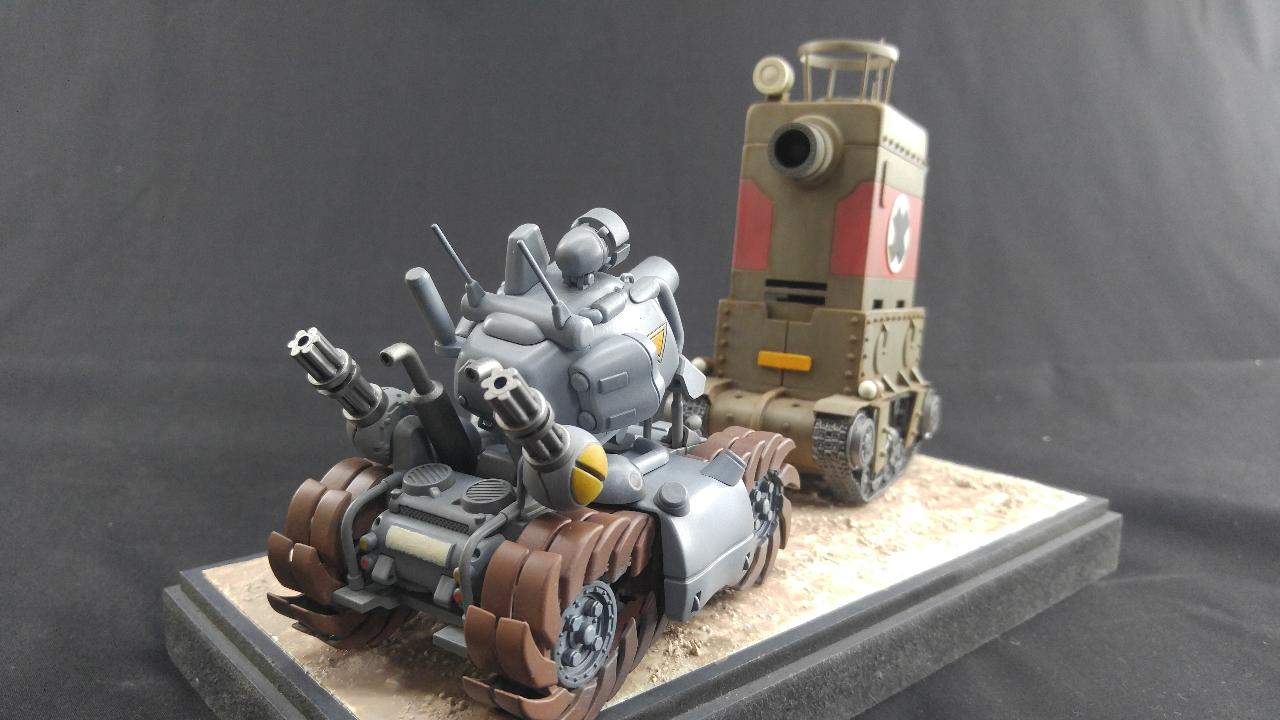 메탈슬러그 탱크는 웨이브제이며, 메탈슬러그 탱크 하나만 만들기에는 뭔가 심심해 보여서 게임에 나오는 사루비아 탱크를 프라판 등을 이용하여 자작으로 만들어주었습니다.