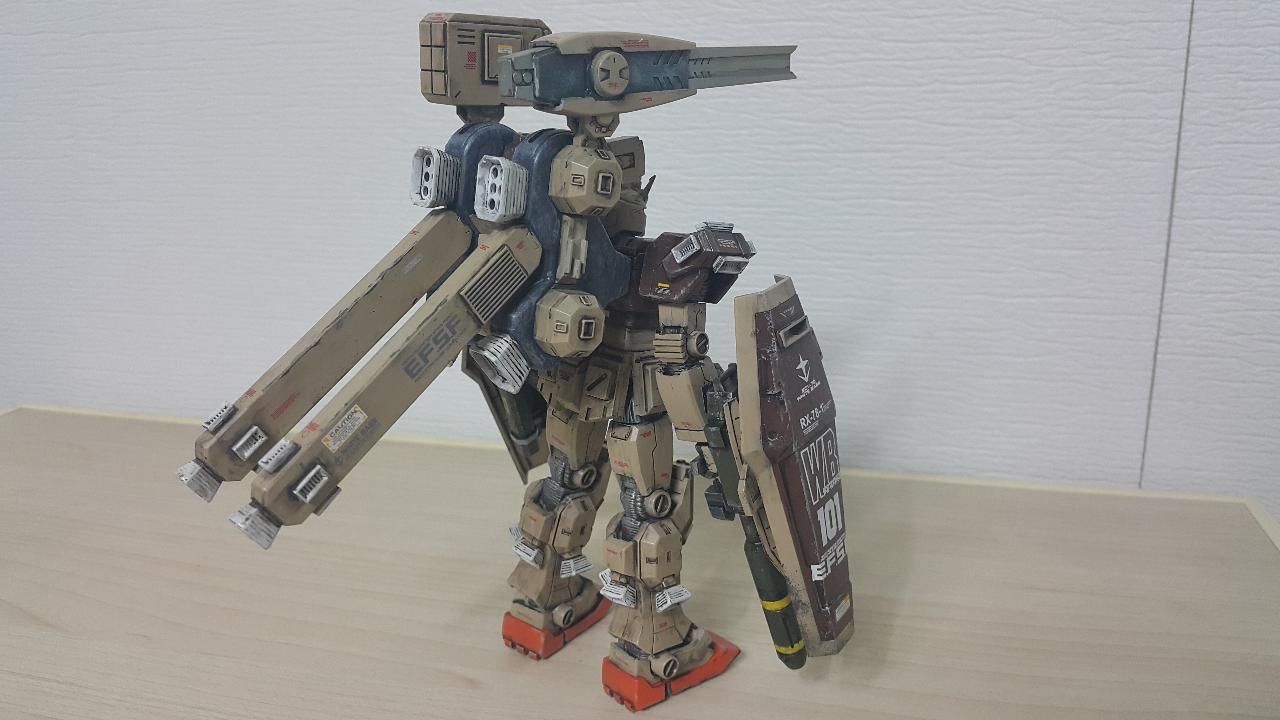 색상은 우주전용 그대로 하긴 식상해 사막색으로 칠했습니다. 개인취향은 밀리터리물과 같은 위장무늬를 좋아하지만, 이번엔 그냥 모빌슈트 답게 칠해보고 싶어 단색으로 칠했습니다.