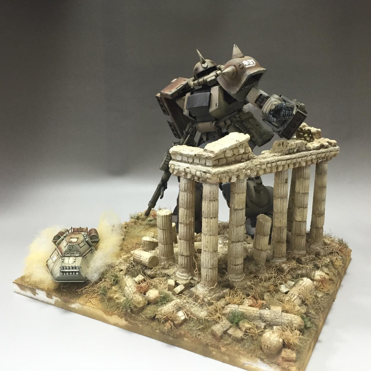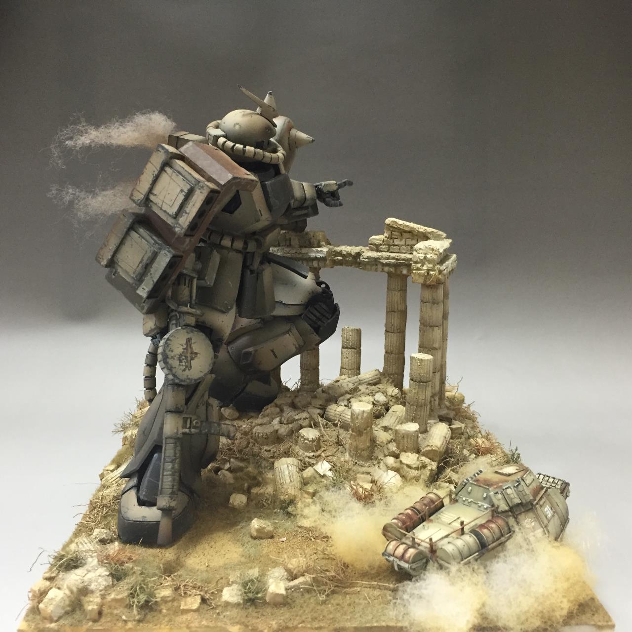상반기때 만들었던 데져트자쿠를 이용하여 간단한 디오라마를 만들어봤습니다