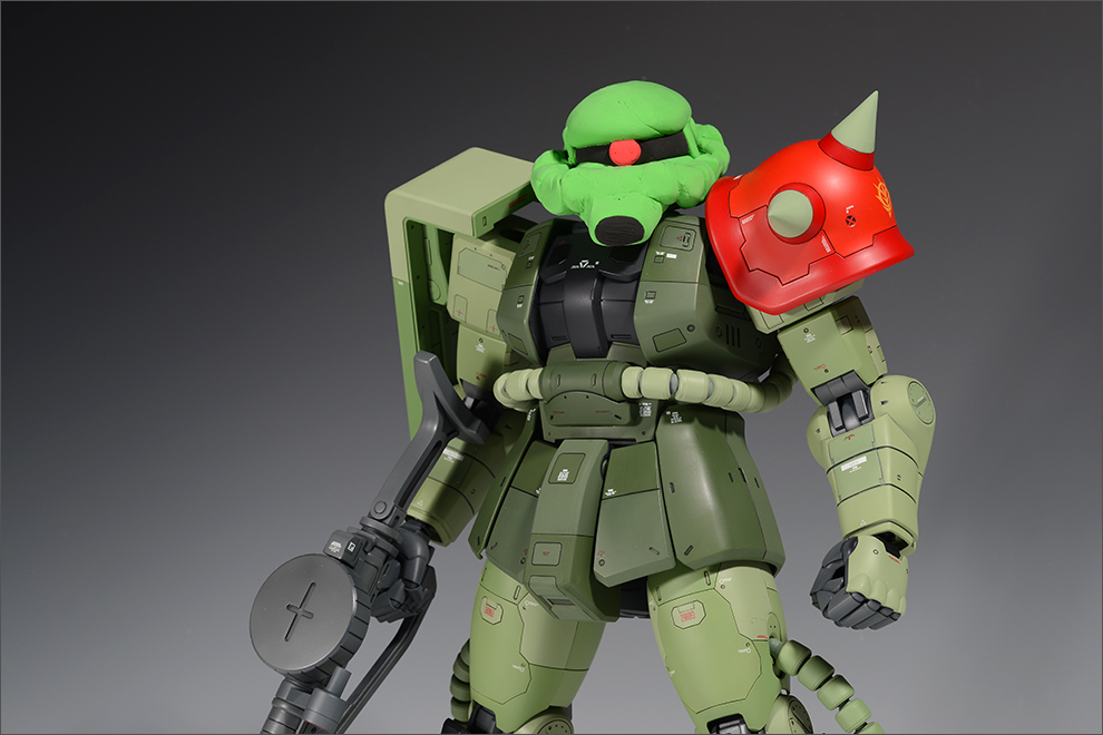 1/48 메가자쿠의 머리를 유치원생 아들녀석에게 클레이로 만들어 달라고 해서 사진과 같은 모습으로 전시회에 출품했습니다.