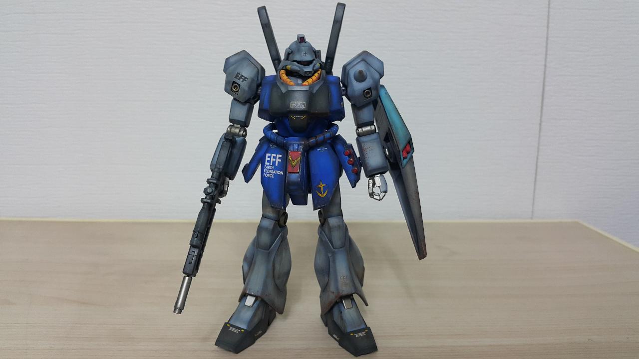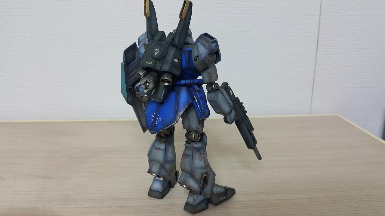 제작은 기라도가 머리/몸통에 제간 팔/다리/백팩/쉴드를 기본으로, 세부설정에 맞게 디테일을 추가했습니다. 라이플은 예전에 건담베이스 매장에서 이벤트때 받은 비매품입니다. 색상은 원설정이 남색계열이라 파란느낌이 많이 나도록 했습니다. 데칼은 설정과 다르게 멋대로 붙여봤습니다.