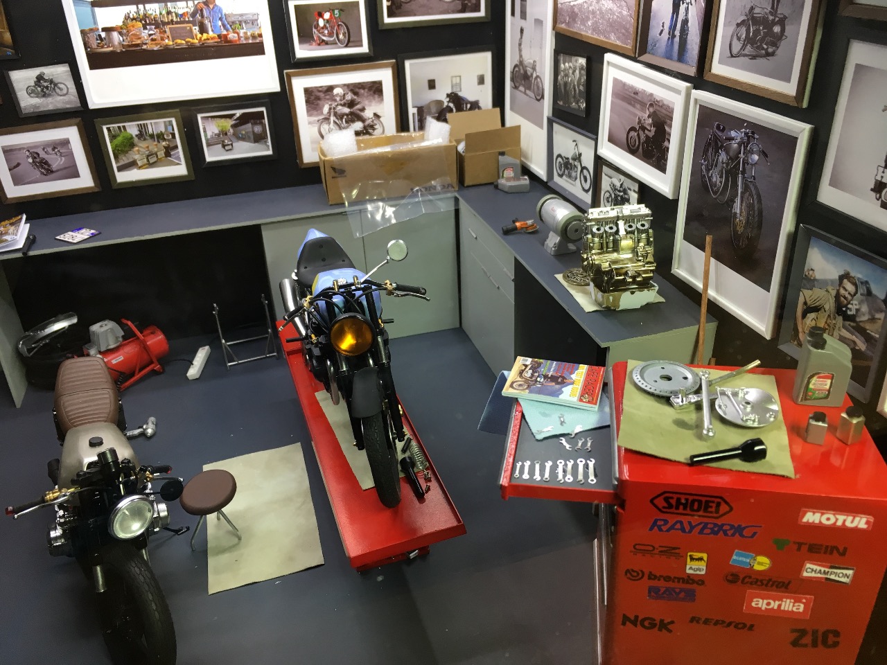 스케일은 1/12입니다. 모터사이클들은 모두 구형키트인 타미야,이마이,아오시마의 혼다 CB750F, 야마하 XJ400 레이싱스페샬, 할리데이비슨 FXS 스프링어 입니다. 다만 모두 개조했습니다. 모터사이클들은 모두 별도의 포스팅 하겠습니다.