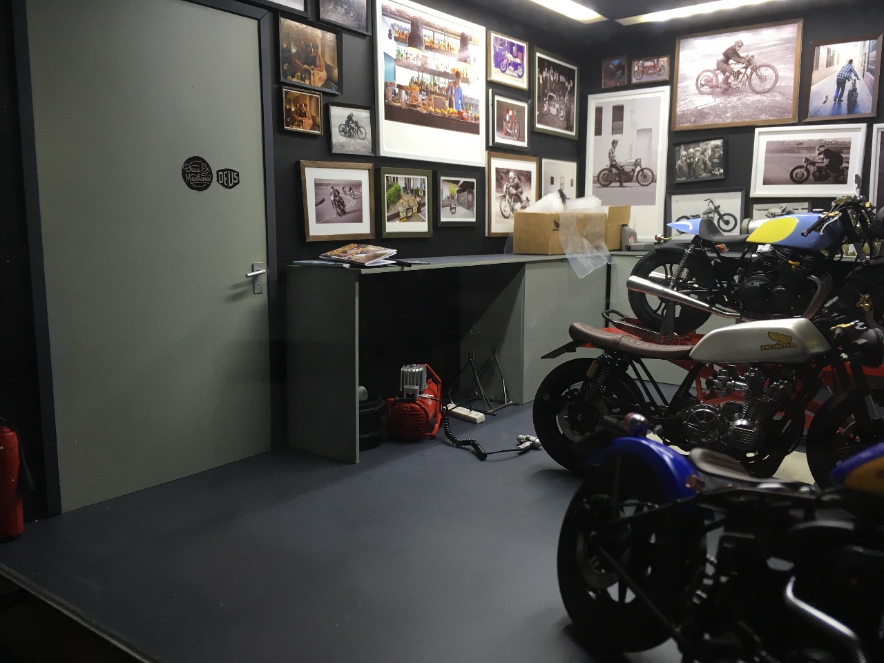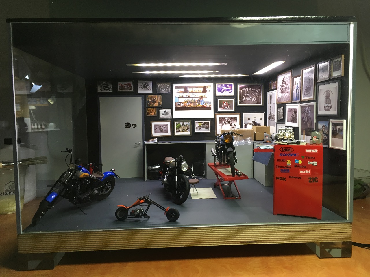 오래전에 의뢰를 받아서 고민고민하다가 오늘 완성한 모터사이클 디오라마입니다. 자작나무 베이스에 아크릴로 케이스를 했구요.. 이태리의 DEUS 모터카페를 일부 재현해봤습니다.