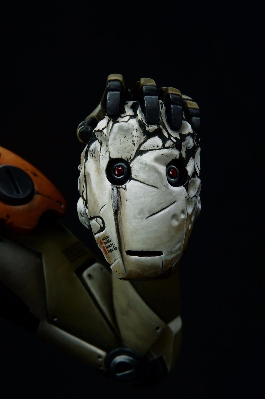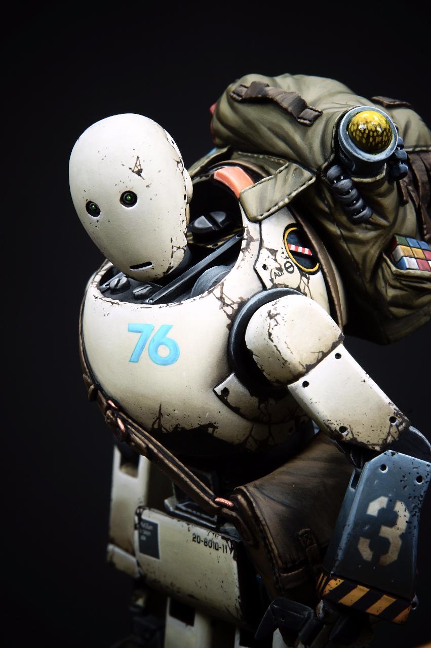 손에 들고 있는 로봇의 머리는 고스트 컴퍼니 세계관의 통일감을 위해 기존 제품인 휴머노이드의 디자인과 동일하게 했습니다.