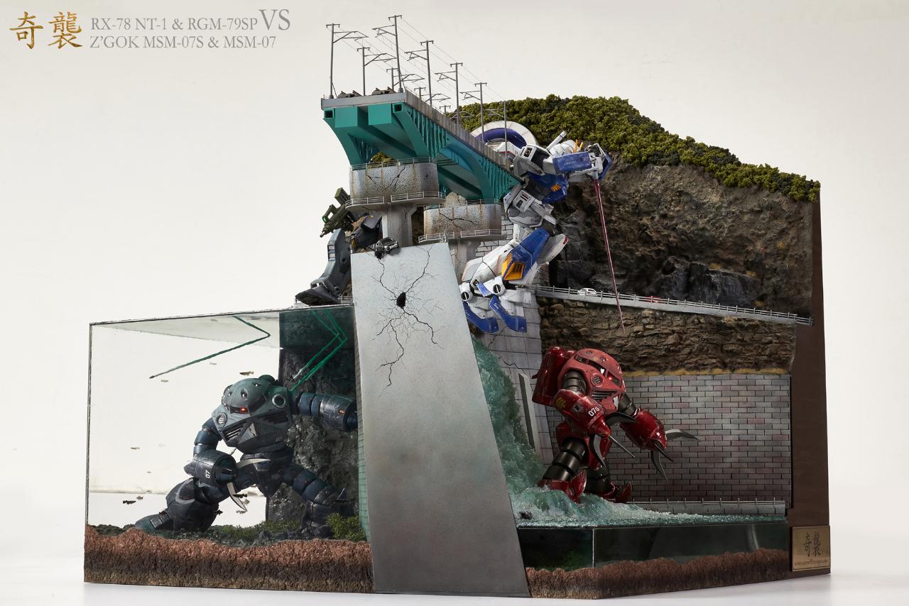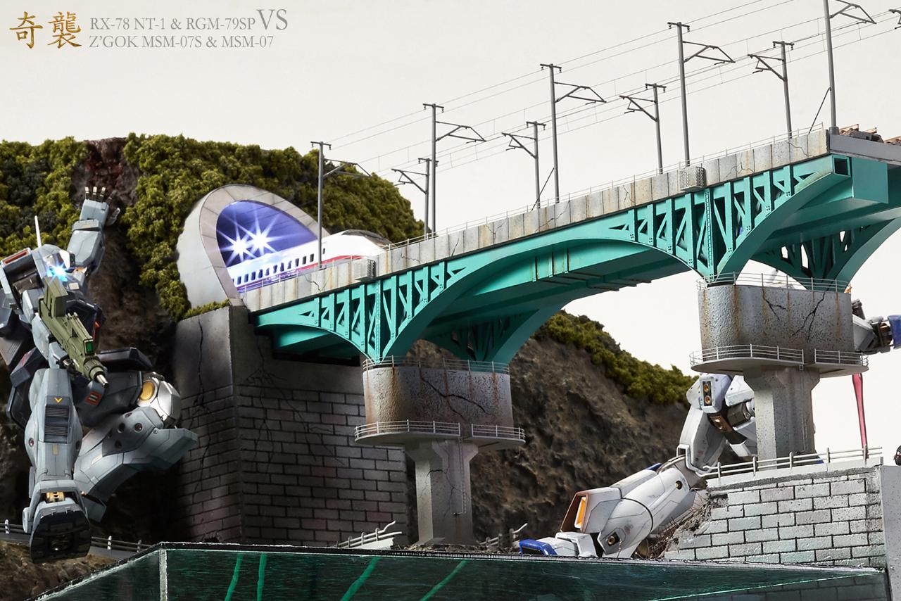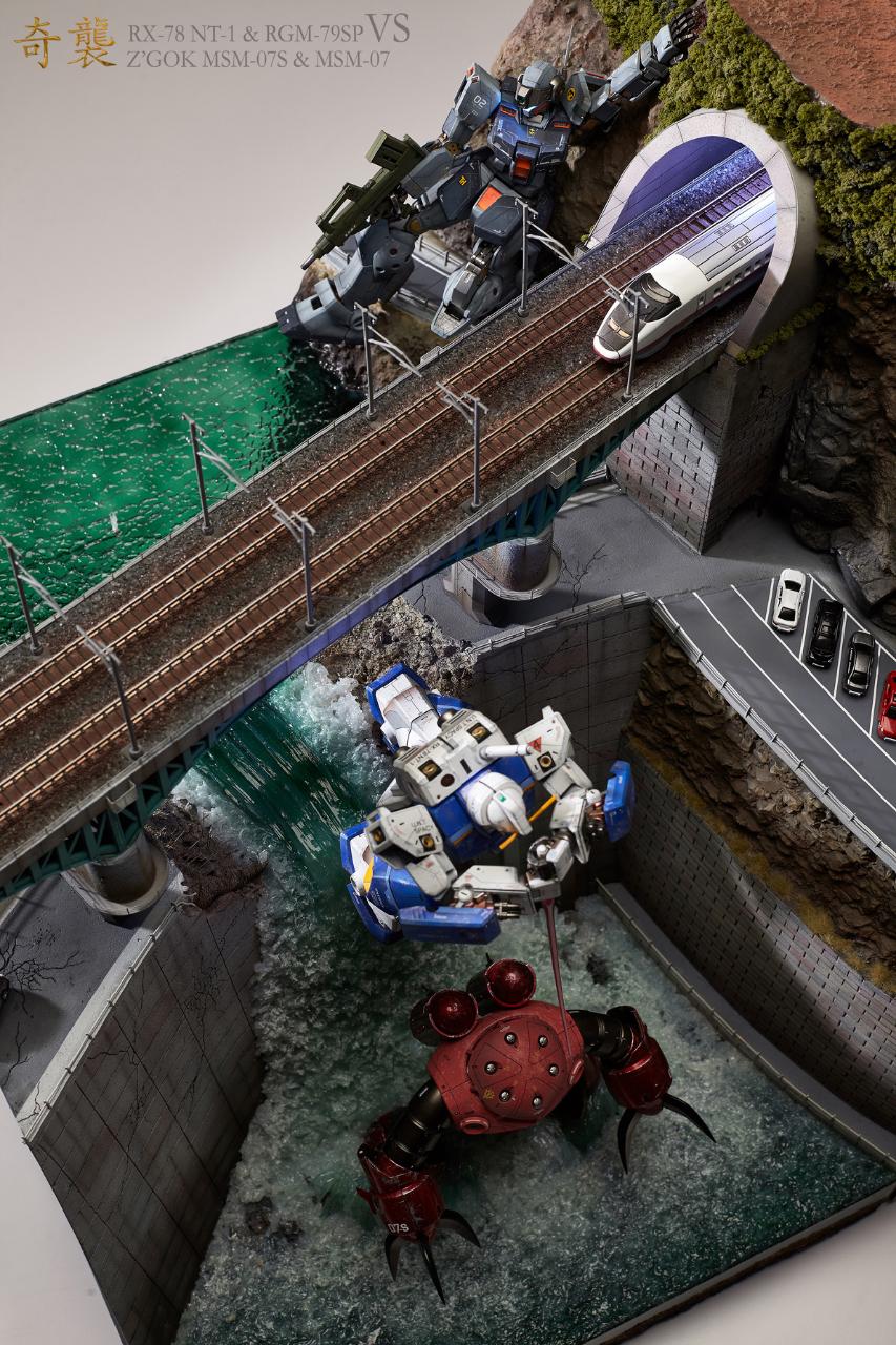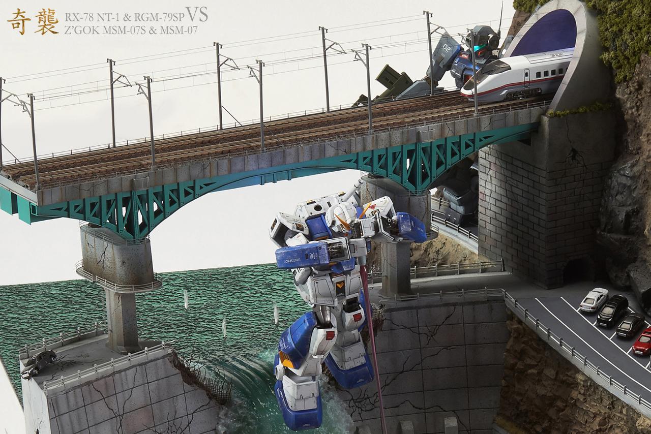 다소 스케일이 어긋나는 부분(기차와 자동차,건담간의 스케일)과 댐위로 지나가는 기차길등은 말이 안될수도 있지만 그냥 재미로 가볍게 보아주시면 감사하겠습니다.