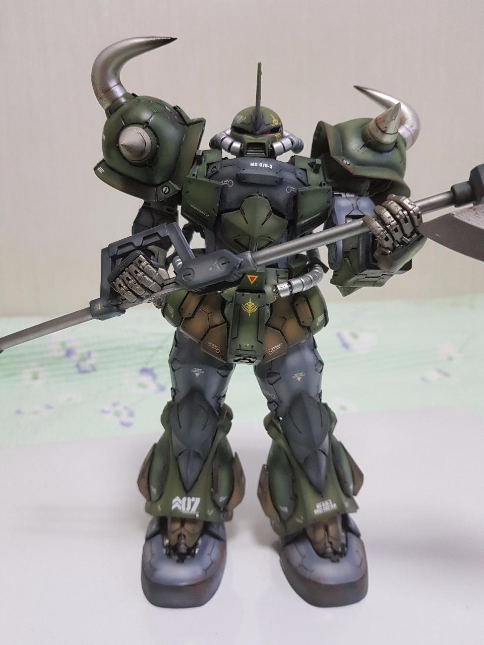네오그레이드 컨버젼 스타일의 구프 커스텀을 만들어봤습니다. 몇 년전 여기에 어느 고수분께서 업로드 하셨던 것으로 기억합니다. 동일 기체를 제작한 만큼 최대한 다른 스타일로 제작해보려 했습니다. 원래 설정색상은 파란색 계통이지만 저는 녹색계통으로 최대한 무거운 느낌이 나도록 도색해봤습니다.