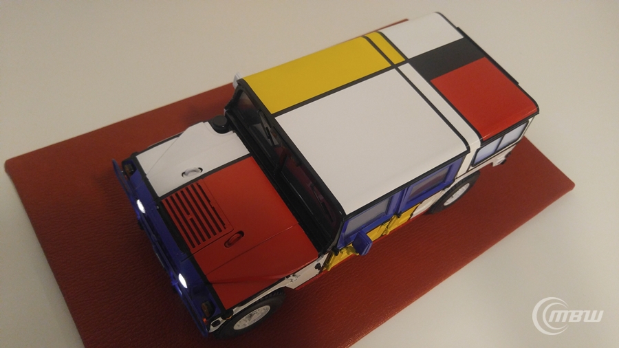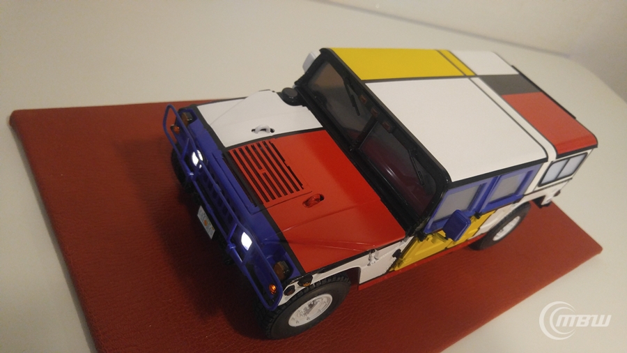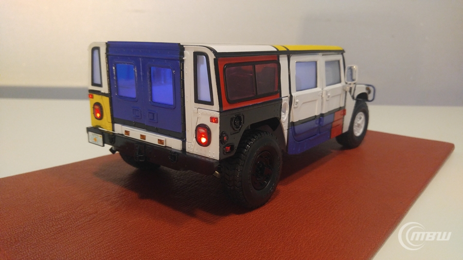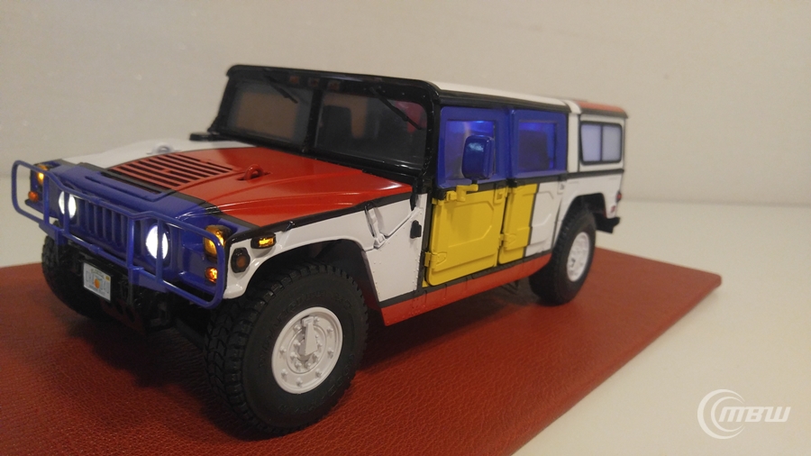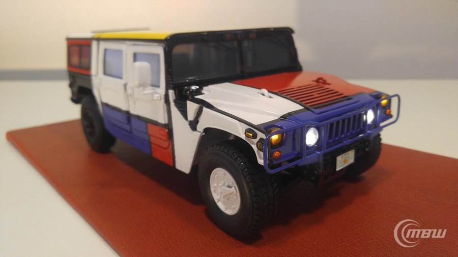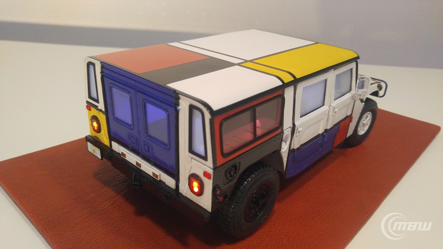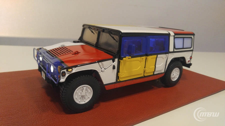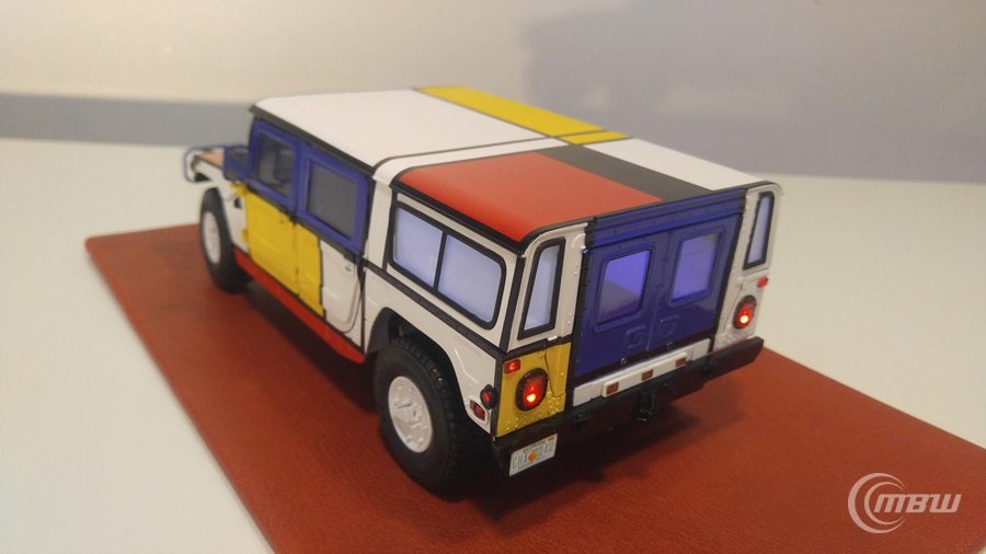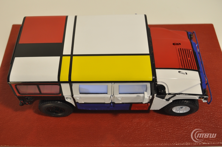 몬드리안 작품을 모티브로 1/18 스케일 EXOTO社 다이캐스트 Hummer H1 모델을 재도색과 LED 튜닝 하였습니다.