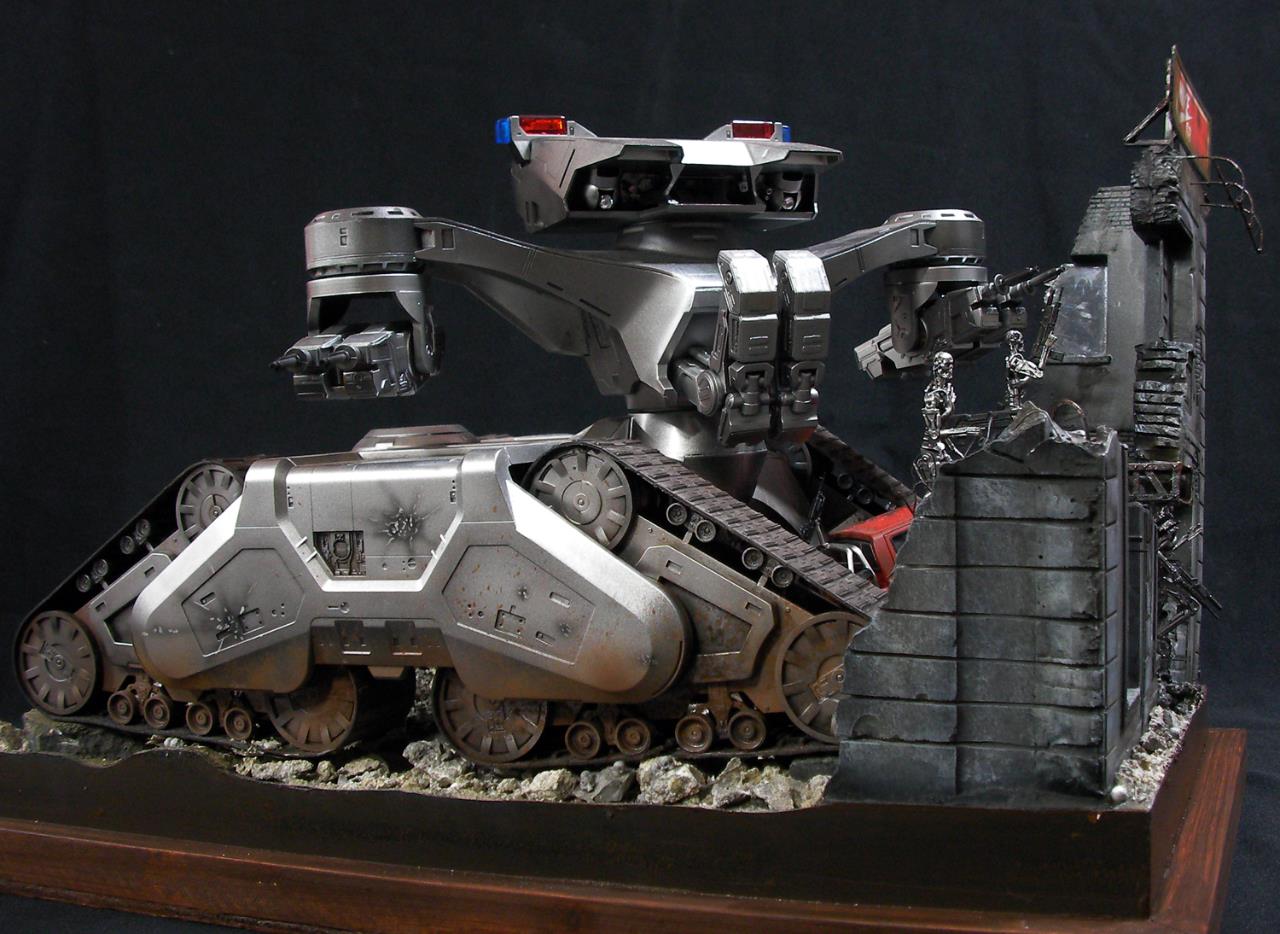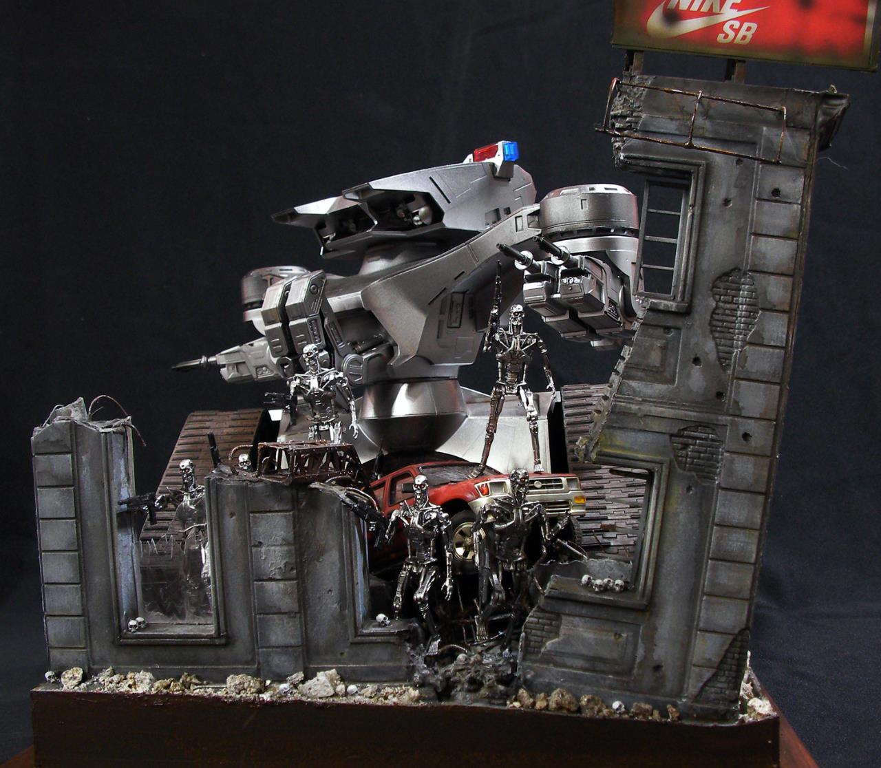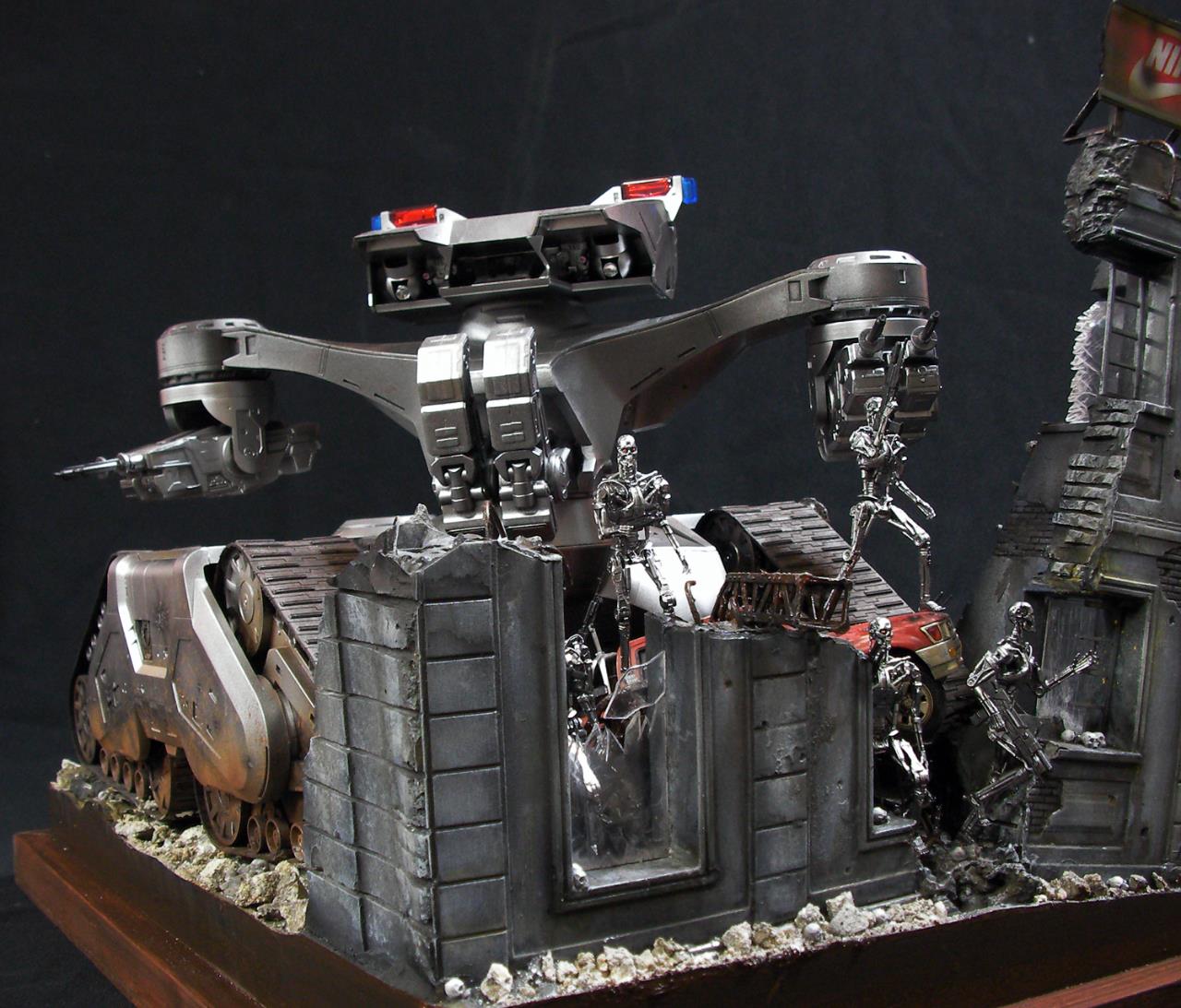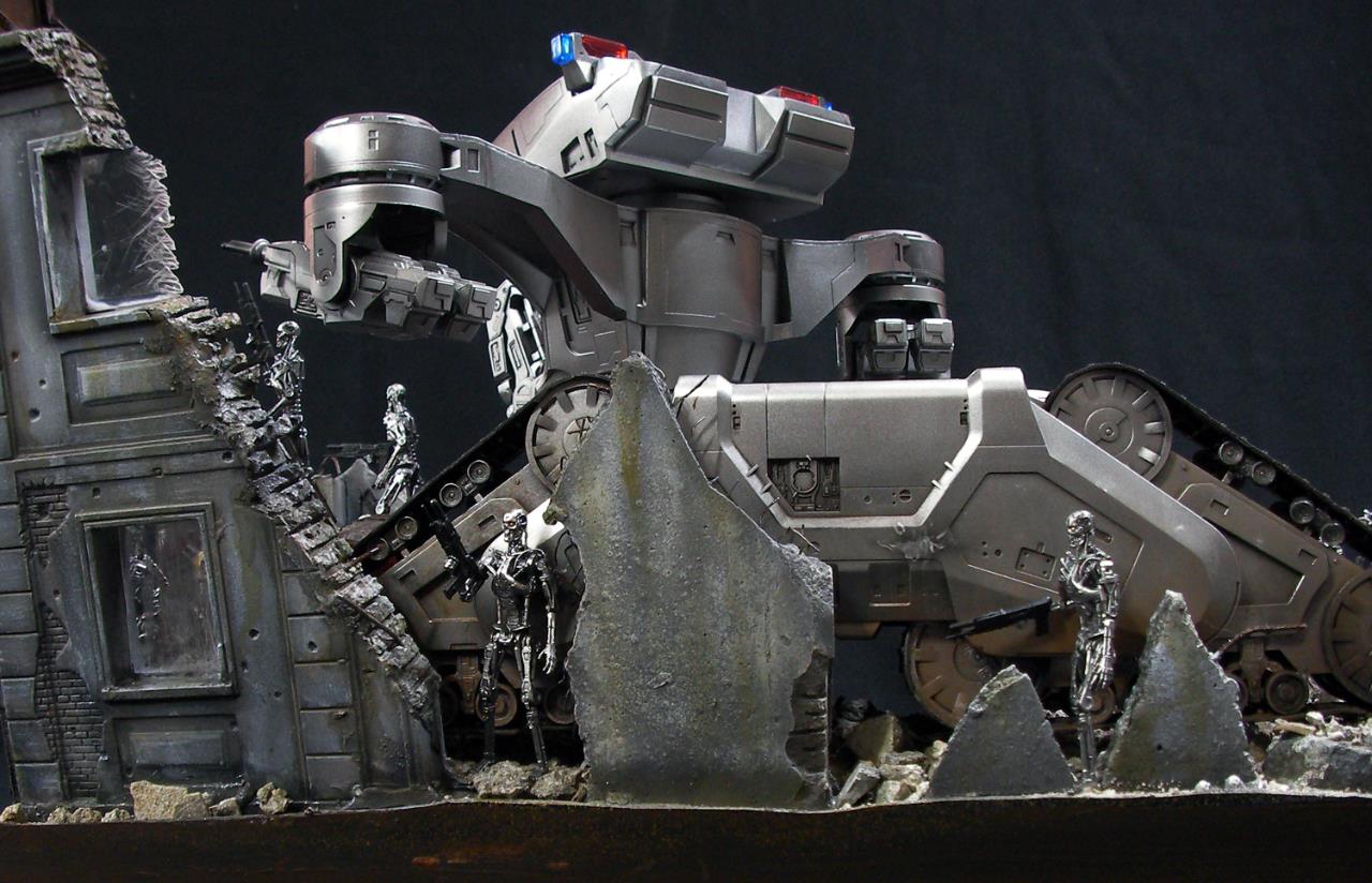 예전 터미네이터 1편에서의 전투씬은 아직까지도 기억에 많이 남아있는 장면인데요~~그모습을 표현하기엔 부족하지만....프라제품이 나와준 덕분에 안해볼수가 없더군요~~인간 병사도 좀 넣으려고 했으나 베이스가 크지면 진열 관리가 힘들다 보니 제외했네요~~이부분이 조금 아쉽지만~~예전 큰스케일 만들었던 녀석이 있는지라~~위안삼으며.....마무리했습니다