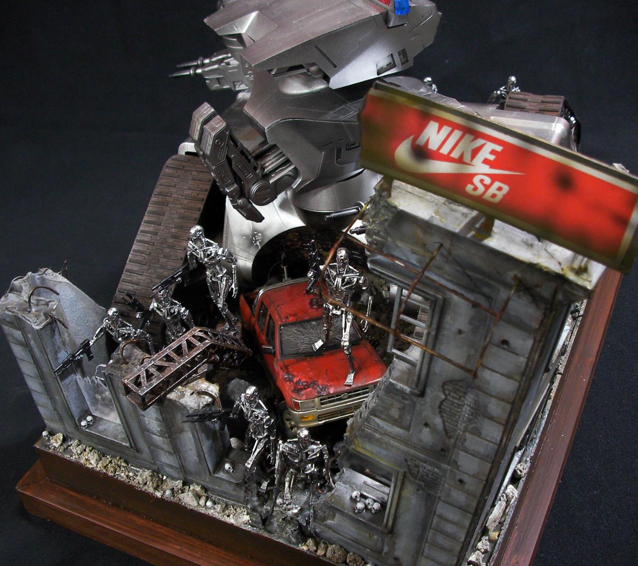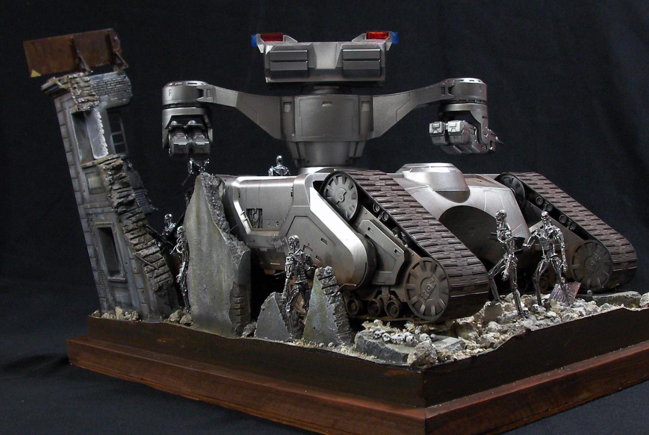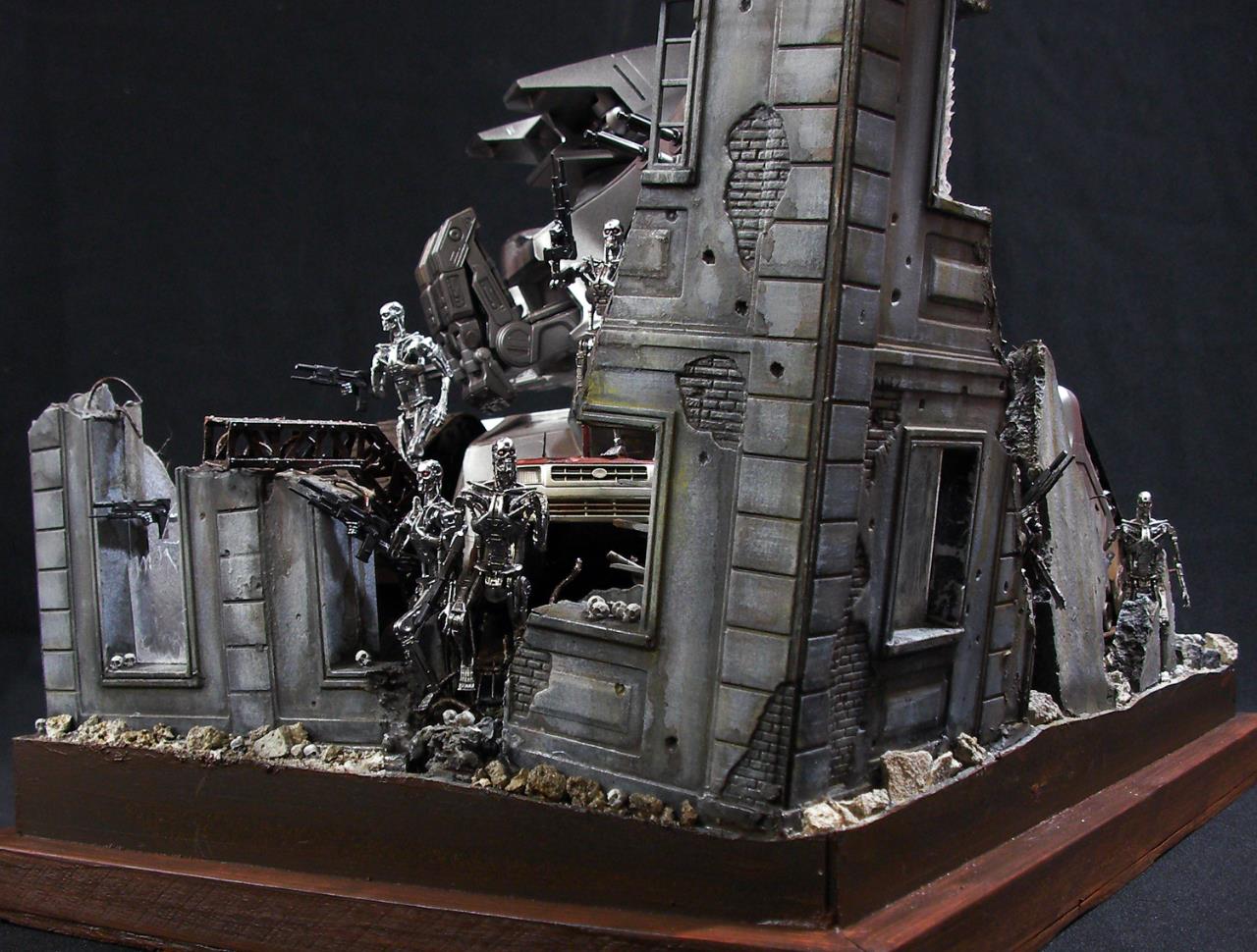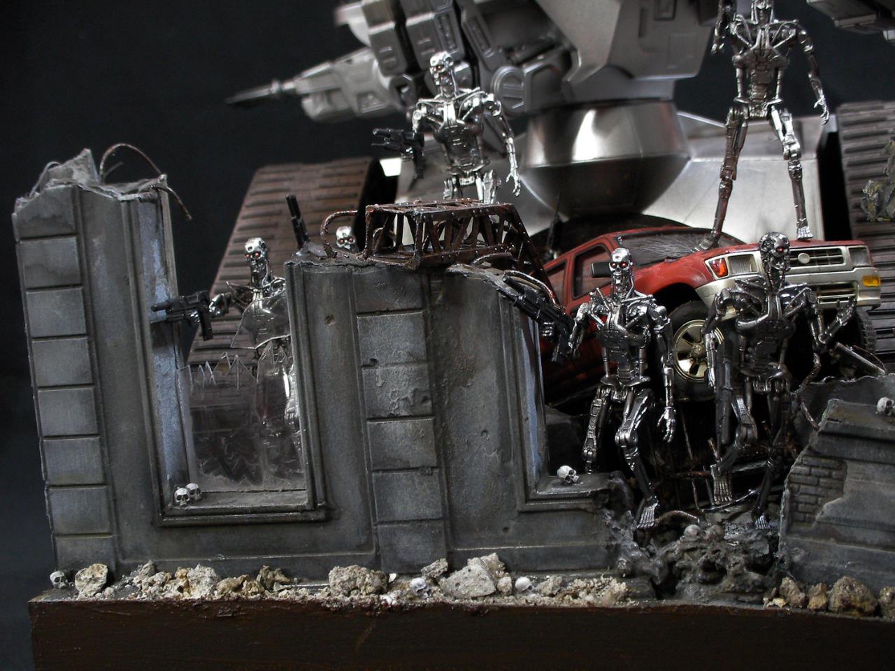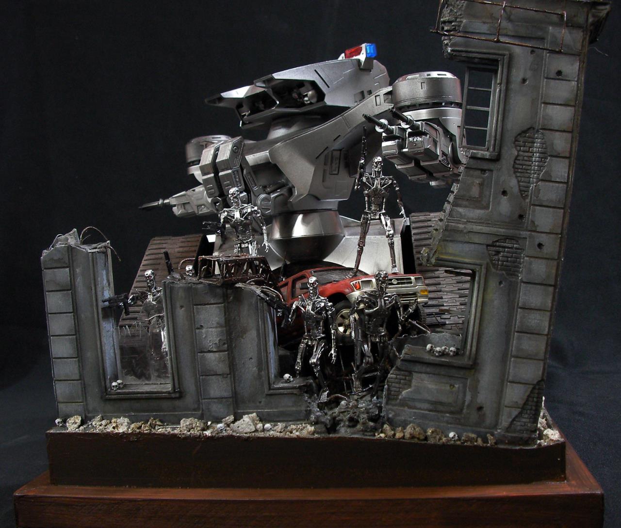 예전 터미네이터 1편에서의 전투씬은 아직까지도 기억에 많이 남아있는 장면인데요~~그모습을 표현하기엔 부족하지만....프라제품이 나와준 덕분에 안해볼수가 없더군요~~인간 병사도 좀 넣으려고 했으나 베이스가 크지면 진열 관리가 힘들다 보니 제외했네요~~이부분이 조금 아쉽지만~~예전 큰스케일 만들었던 녀석이 있는지라~~위안삼으며.....마무리했습니다