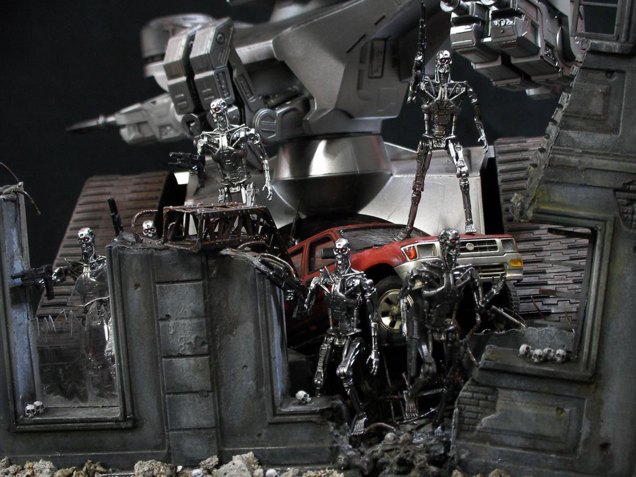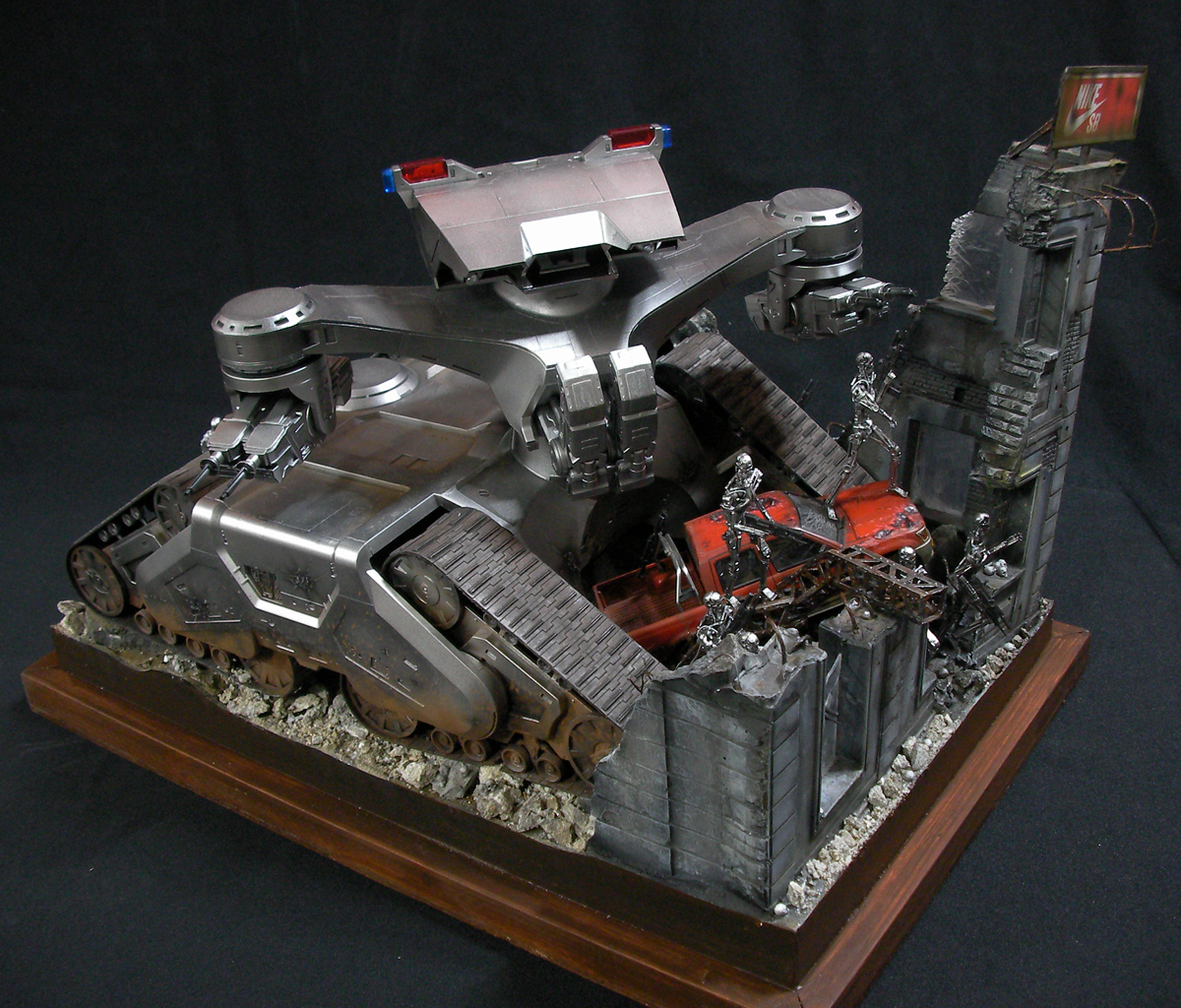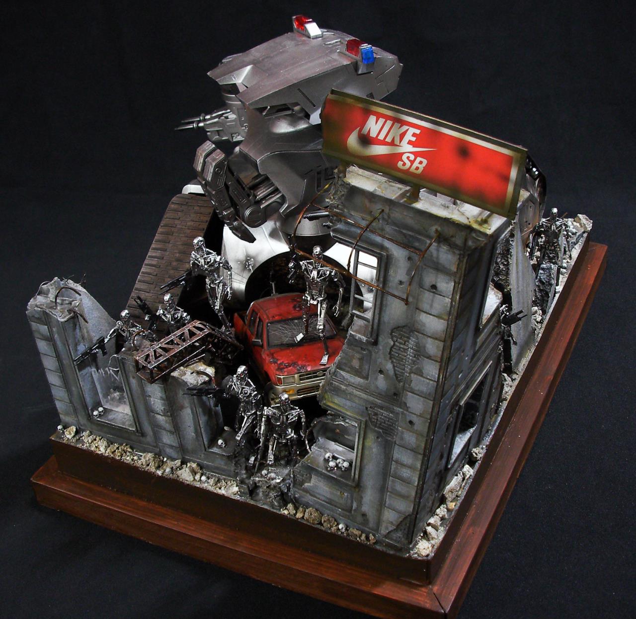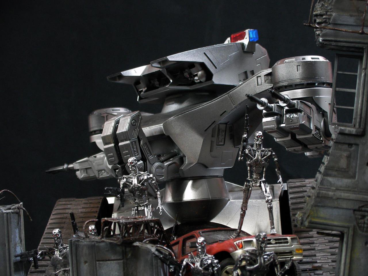 예전 터미네이터 1편에서의 전투씬은 아직까지도 기억에 많이 남아있는 장면인데요~~그모습을 표현하기엔 부족하지만....프라제품이 나와준 덕분에 안해볼수가 없더군요~~인간 병사도 좀 넣으려고 했으나 베이스가 크지면 진열 관리가 힘들다 보니 제외했네요~~이부분이 조금 아쉽지만~~예전 큰스케일 만들었던 녀석이 있는지라~~위안삼으며.....마무리했습니다