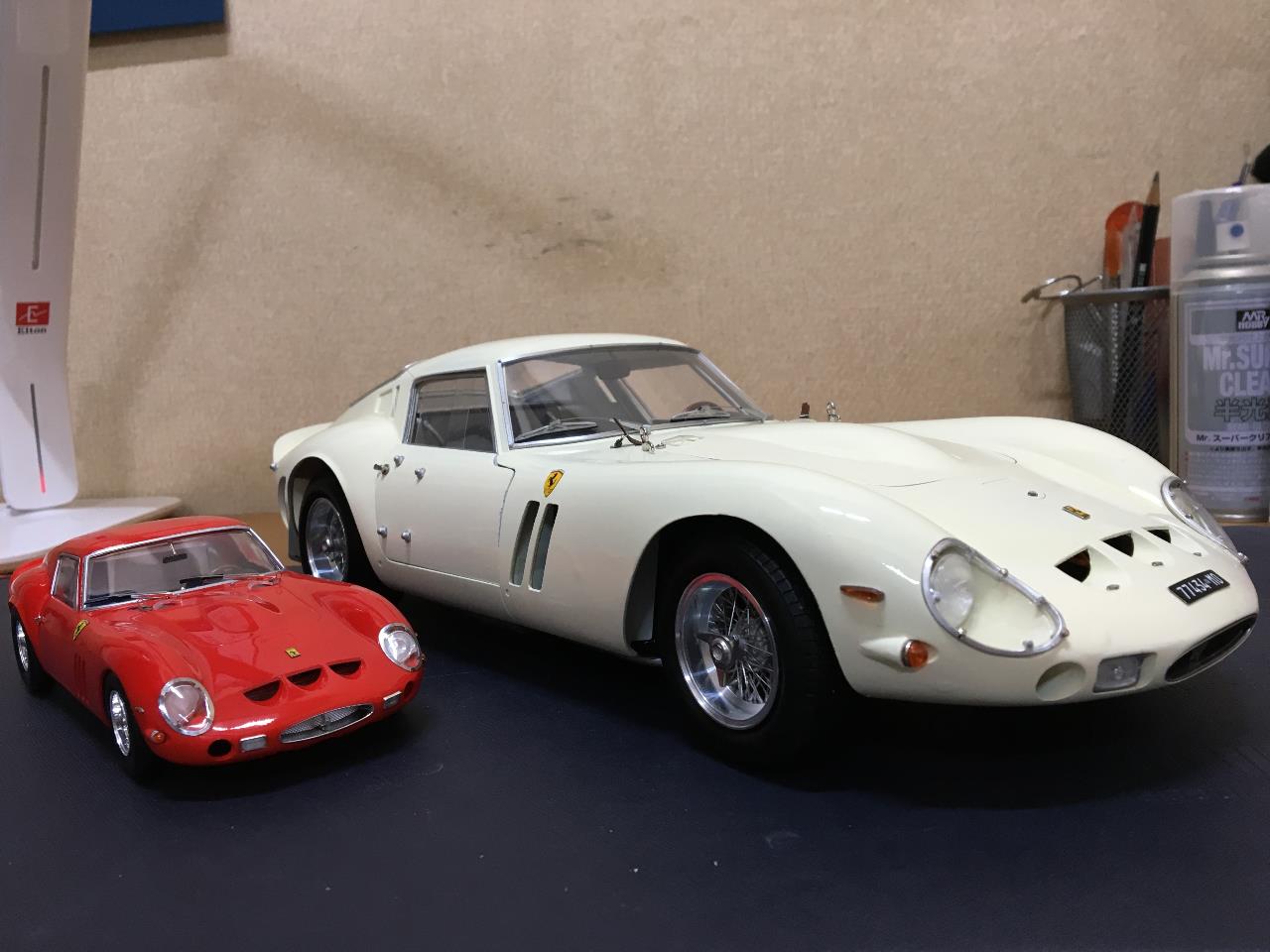오랜만에 인사드립니다. 이번에 소개드리는 작품은 Ferrari 250 GTO로, 페라리 중 단연 최고의 모델로 꼽는(개인적으로) 모델입니다. 옆의 비교작은 예전에 만든 Gunze hightech 시리즈의 1/24 입니다.