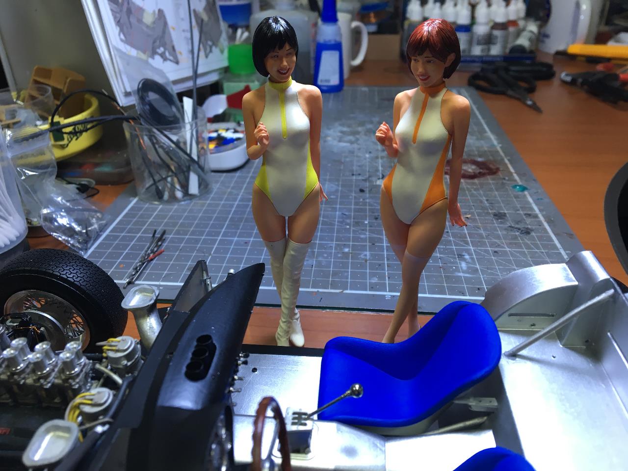 마무리에 각별히 신경이 쓰이는 이유..많지만 대표적인게 바디의 재질이 레진인지라 프라이머+서페이서+도색+클리어로 중무장해도 제작 도중 피막이 부분부분 떨어질 때면 정말 난감하더군요. 땜빵 해 가며 완성은 했는데, 간혹 보이는 클리어 떡이라든지 까임, 이물질 등은 제 실력으론 어쩔 수가 없네요 ㅠㅠ