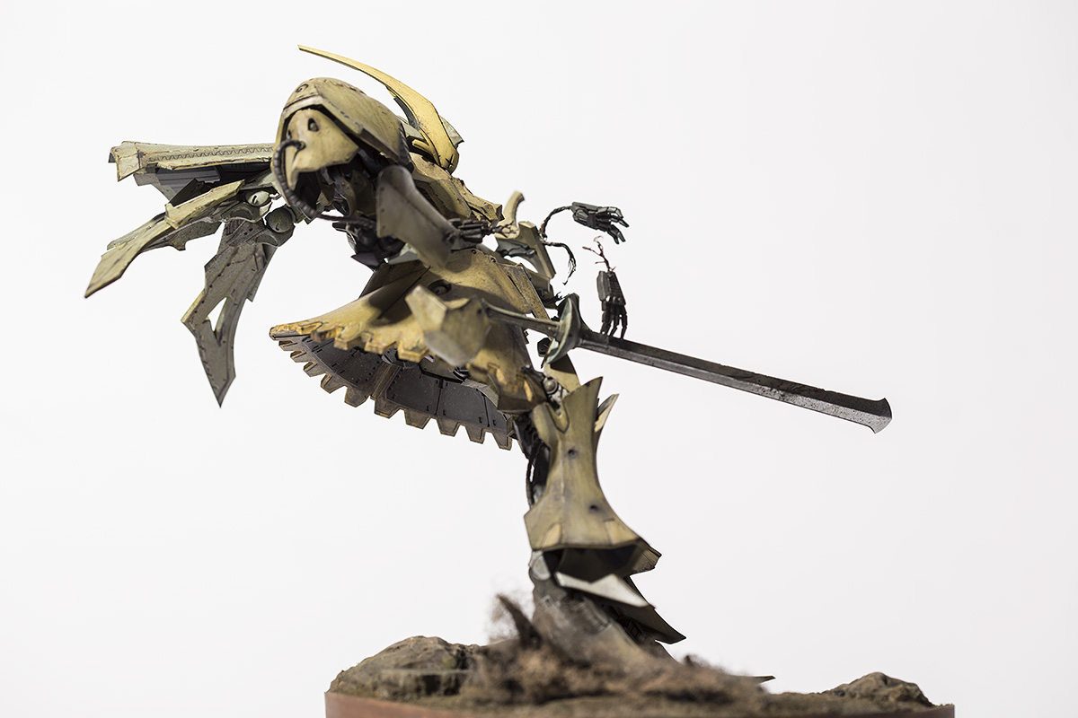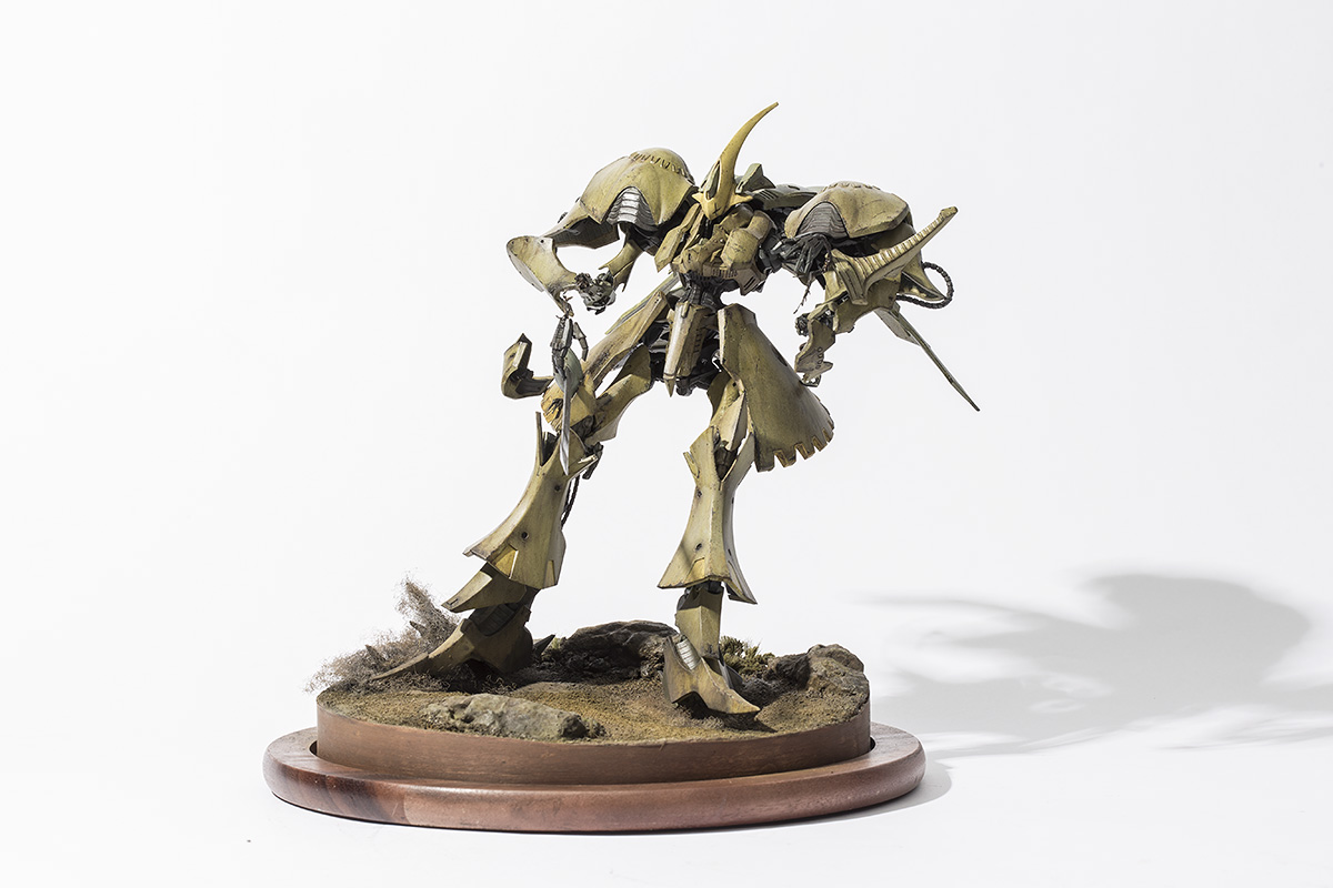 포즈는 만화에서 나오는 테러미라지에 의해 손모가지 댕강 잘리는 장면 입니다. 둘의 접전을 연출하는 디오라마는 역량 부족이고 바이오라만으로도 재미있는 장면인 것 같아 제작해 보았습니다.
