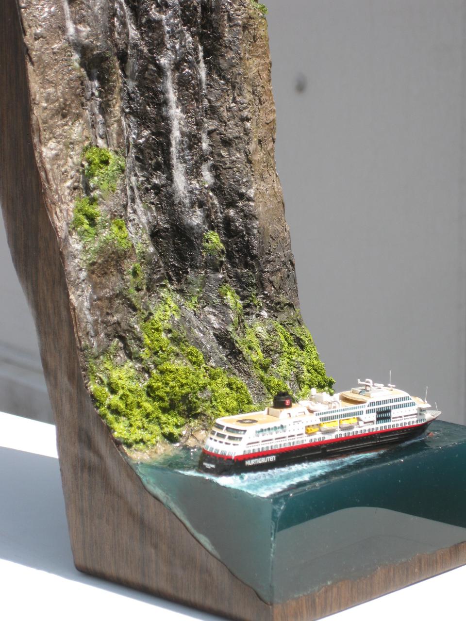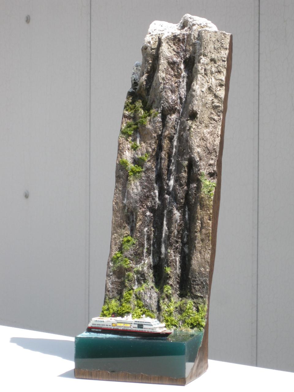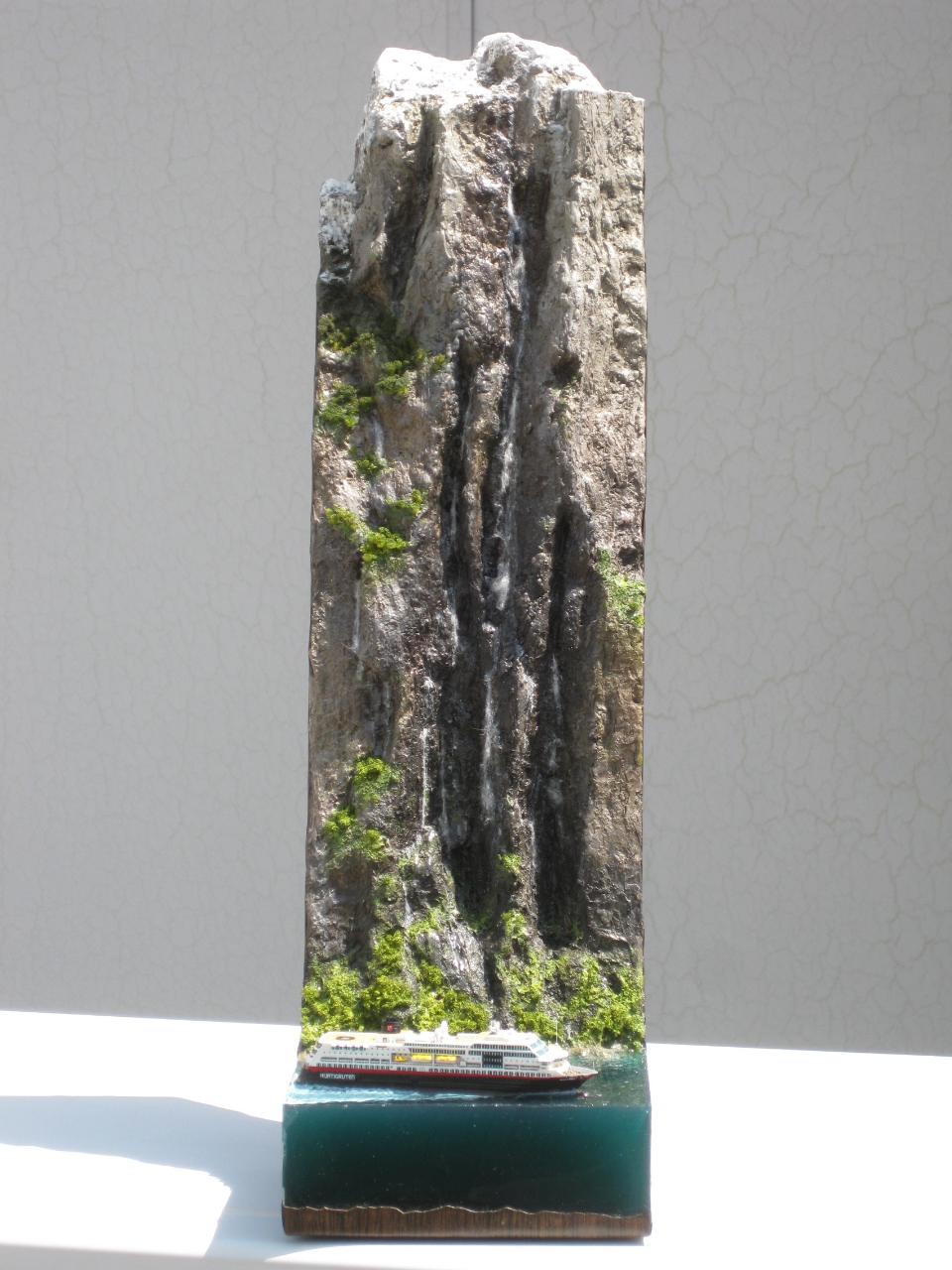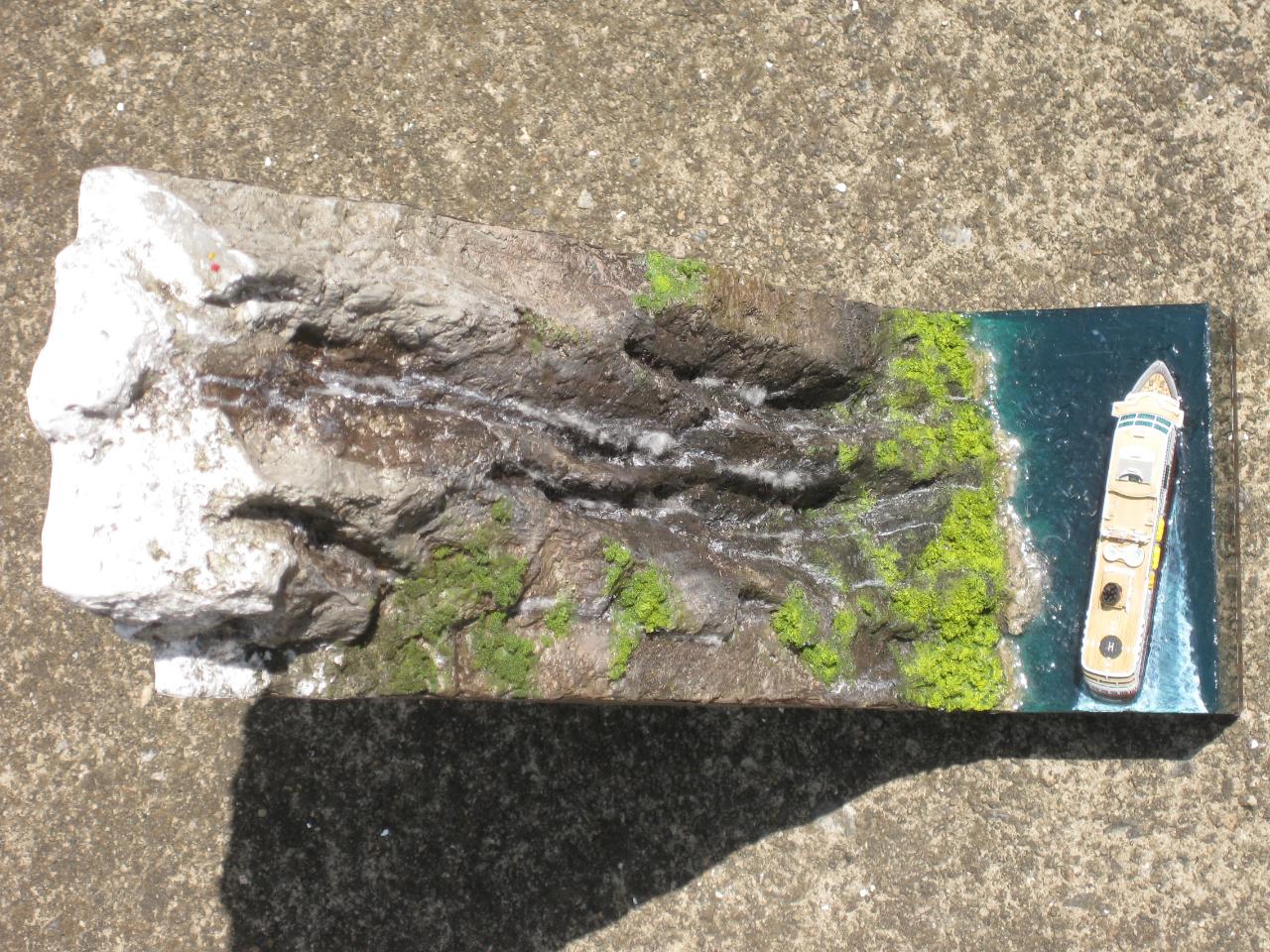 스케일은 1:1200으로 배 길이가 11cm정도로 무척 작지만 폭포의 실제 높이가 400m 나 된다하여 높은 베이스를 제작하게 되었습니다.