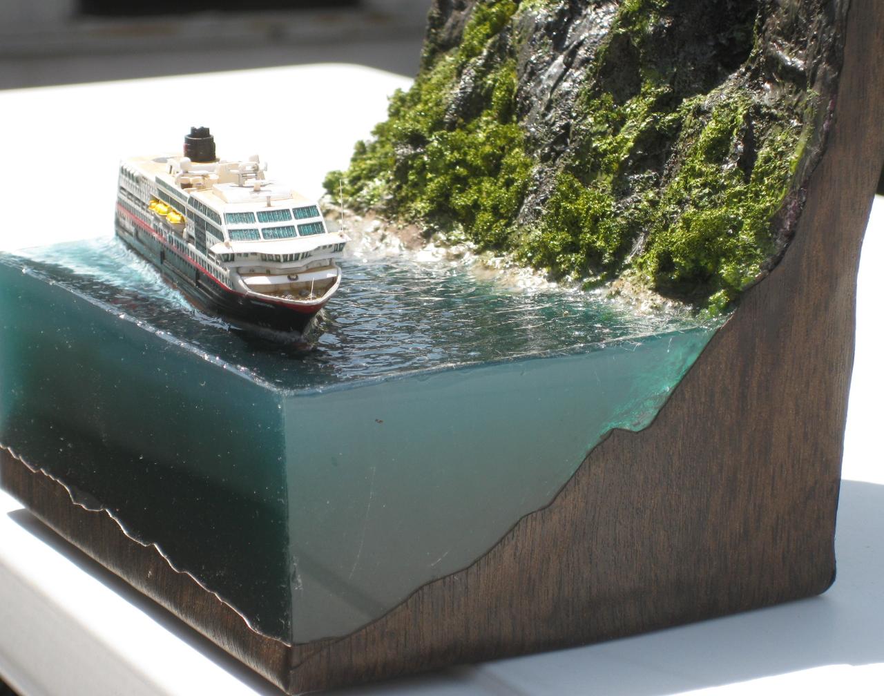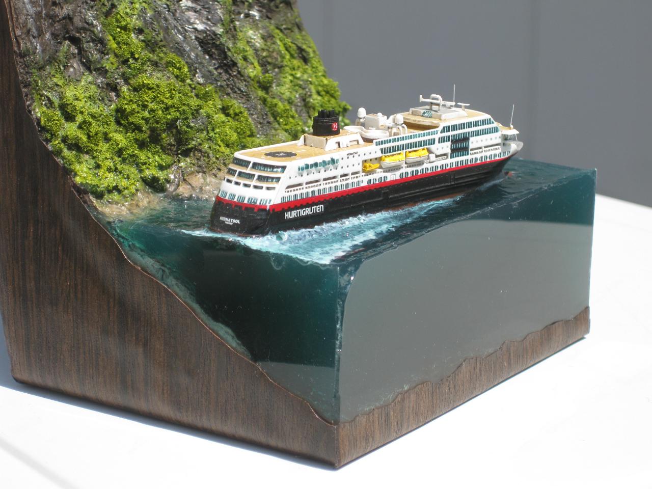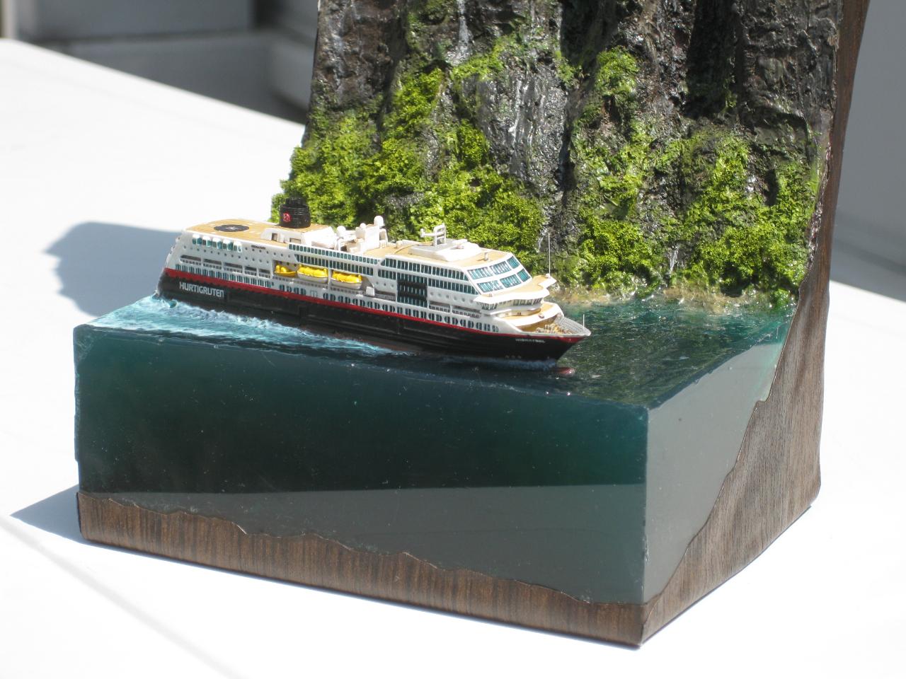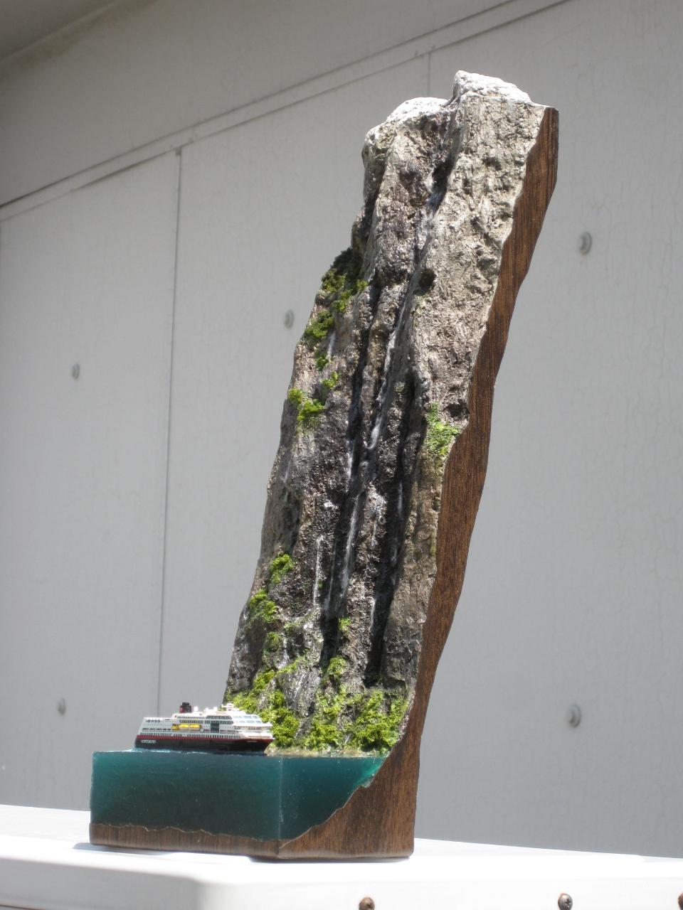 스케일은 1:1200으로 배 길이가 11cm정도로 무척 작지만 폭포의 실제 높이가 400m 나 된다하여 높은 베이스를 제작하게 되었습니다.