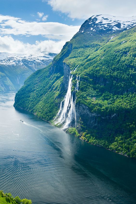 노르웨이의 Geiranger Fjord의 Seven Sisters Waterfall을 배경으로 하여 지나가는 피요르드 크루즈 선을 제작해봤습니다.