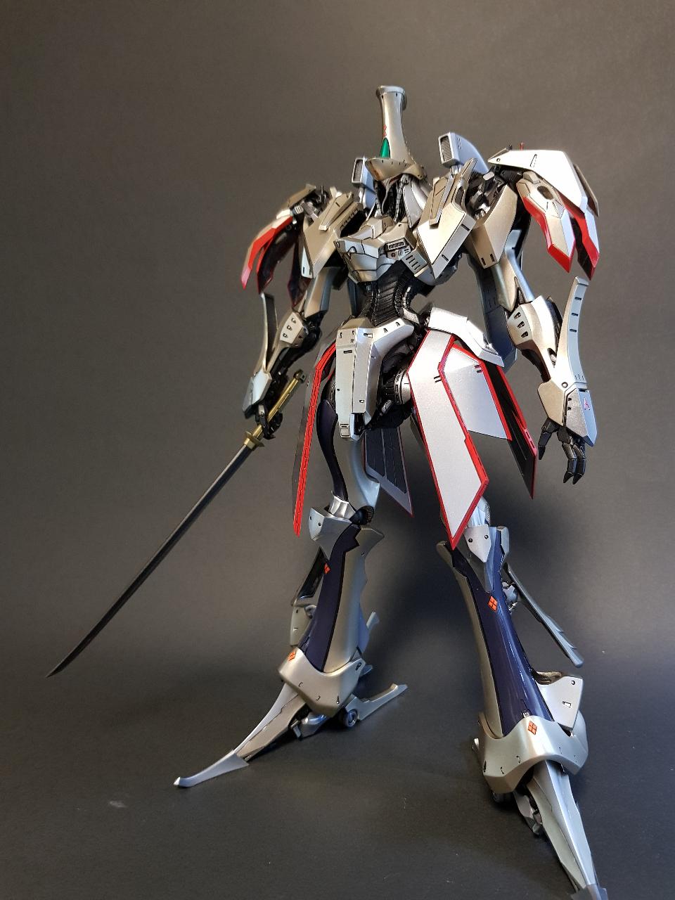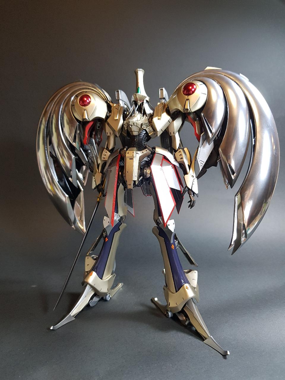 기본 장갑색은 IPP 티타늄과 옐로우 골드를 섞어 조색하였고, 어깨 장갑은 쿵스 미러크롬을 사용했습니다.