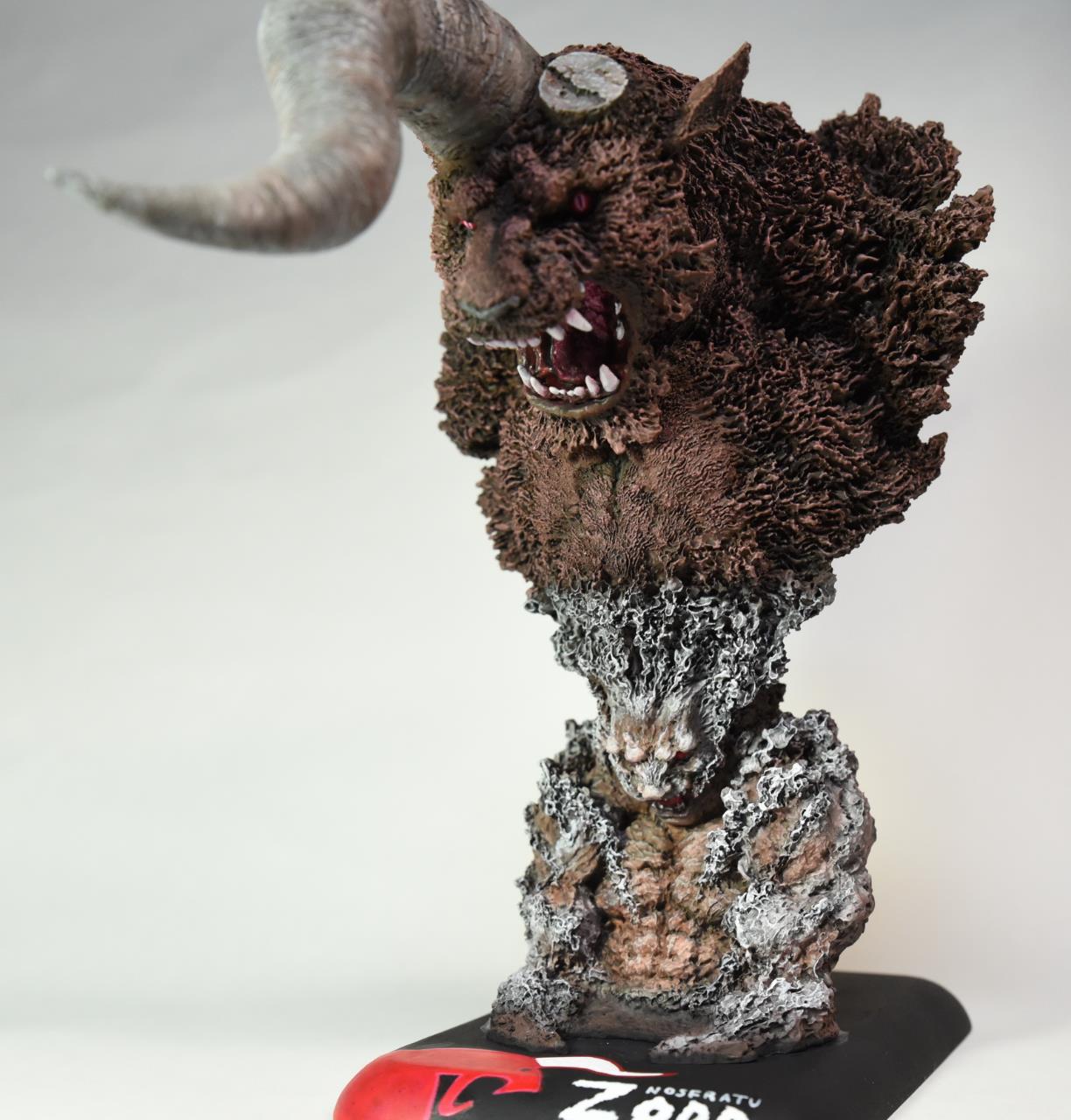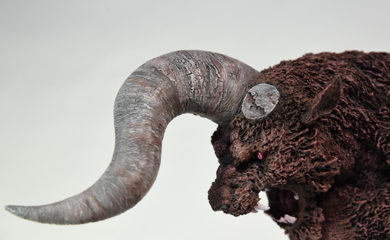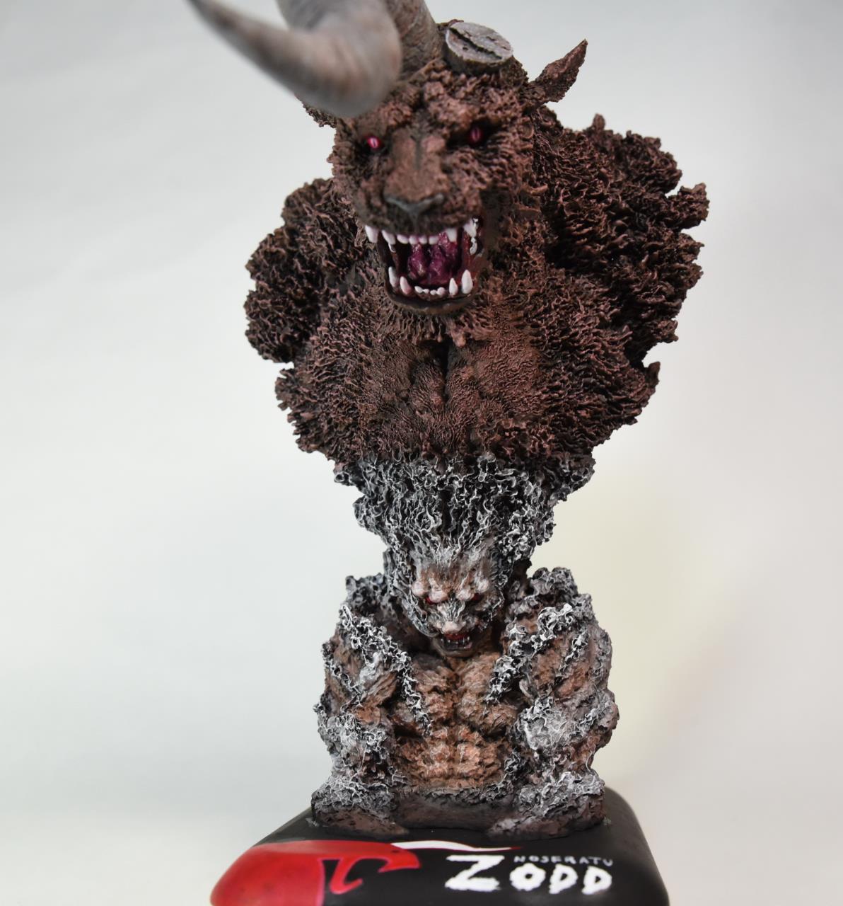 레진 제품이고 약 1/10 스케일 정도의 베르세르크 조드 야수버전 흉상입니다. 베르세르크란 만화와 애니에 등장하는 캐릭터입니다. 원형이 헤드롱인 것으로 알고 있습니다. 부품은 7개 정도로 단촐하고 도색에 집중했습니다. 베이스는 다이소에서 구매한 과자 그릇으로 검은색 도색 후 글자와 그림을 그려넣어주었습니다.