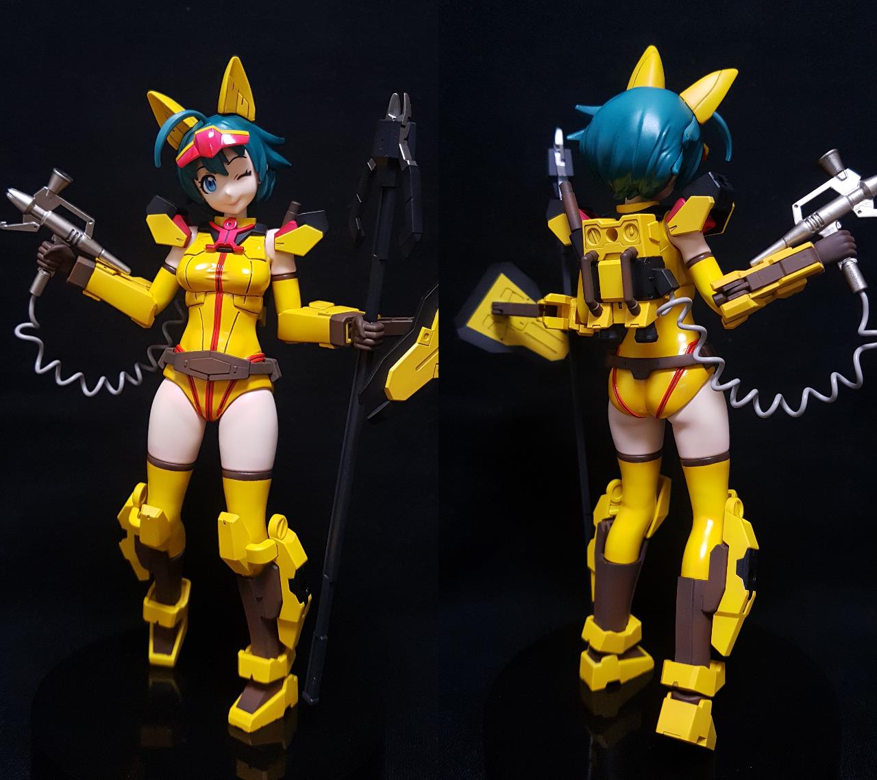 모델러에게 친숙한 에어브러시 니퍼등 모형공구를 잔뜩들고 나오는 컨셉이라 맘에 들어서 만들어봤습니다. 기본적으로 관절이 달려있지만 어짜피 만들면 움직일 일이 없기 때문에 고정포즈로 만들어서 관절 및 일부분을 조형했습니다.