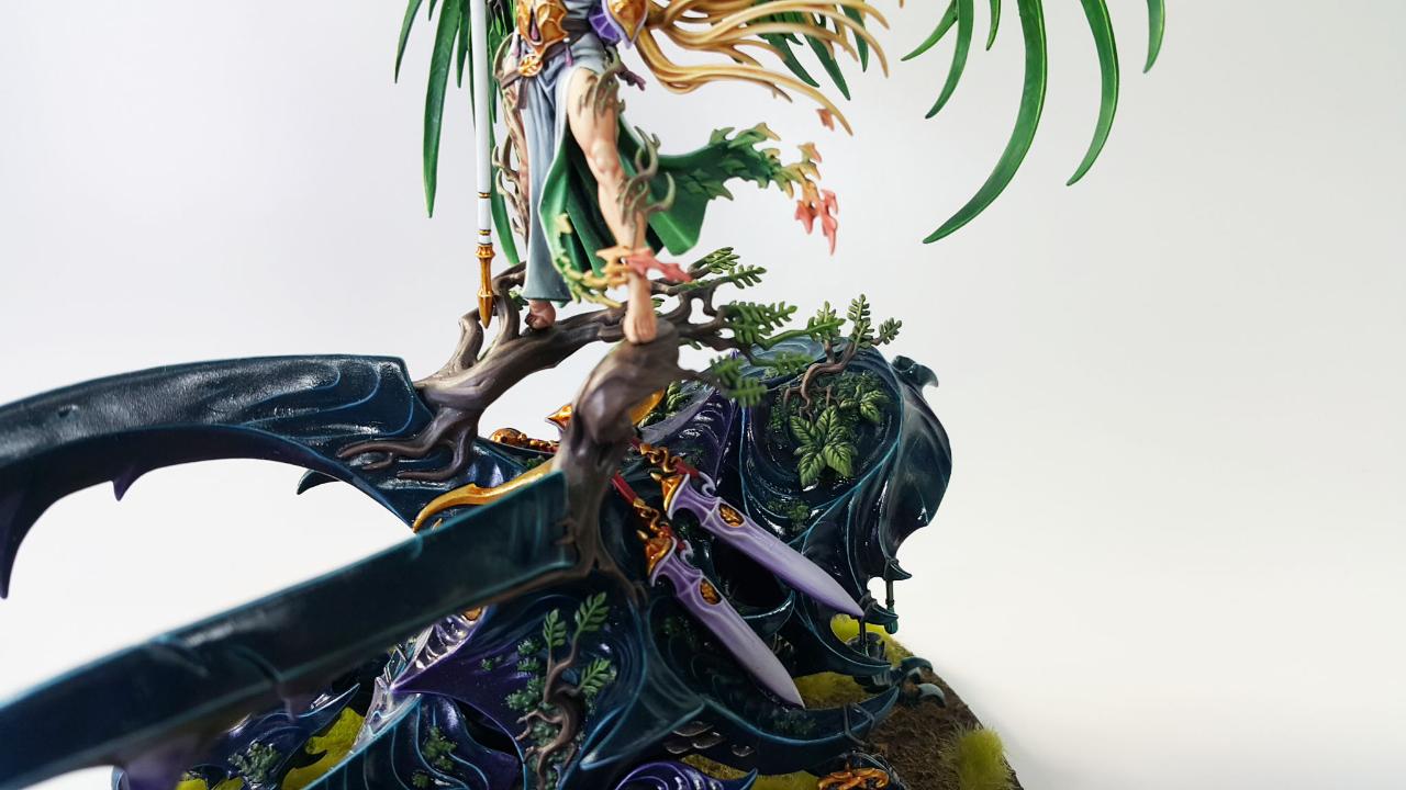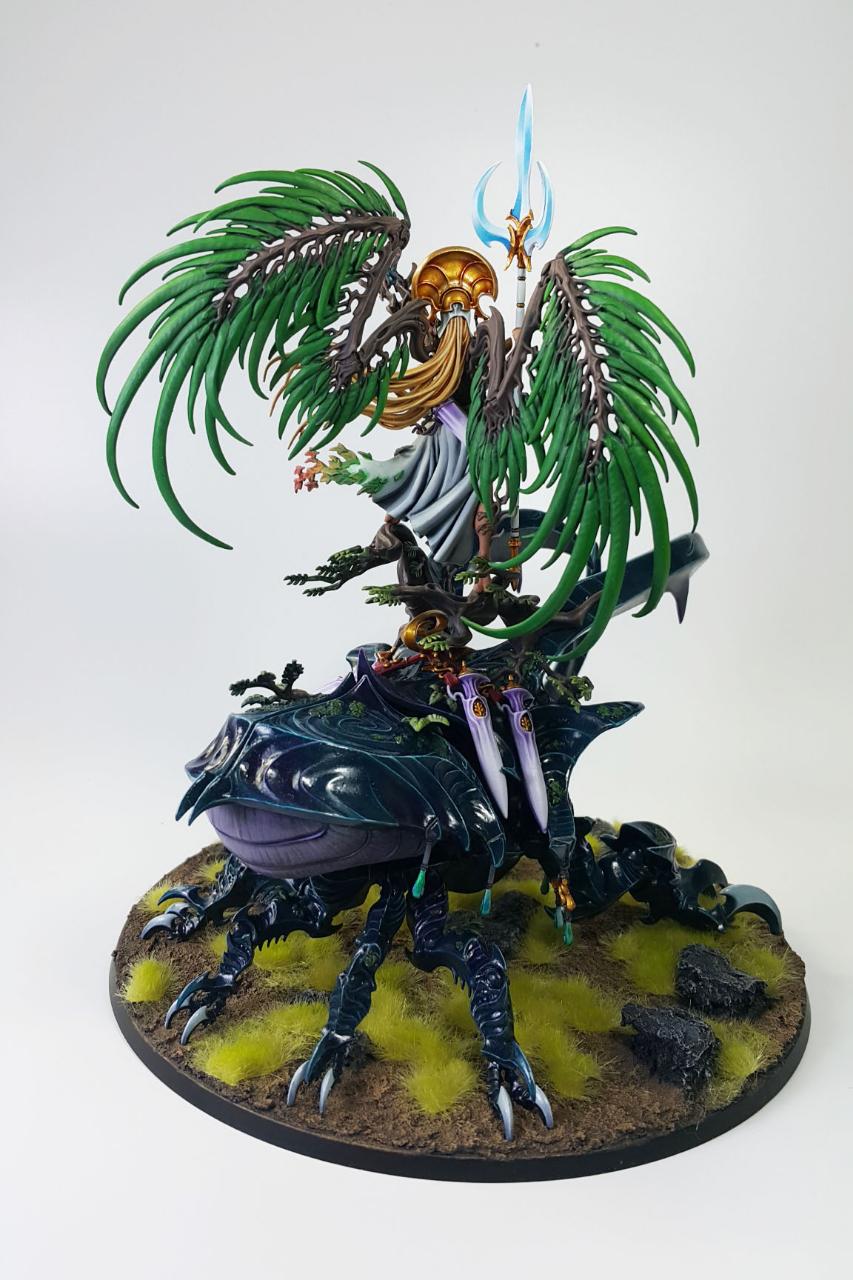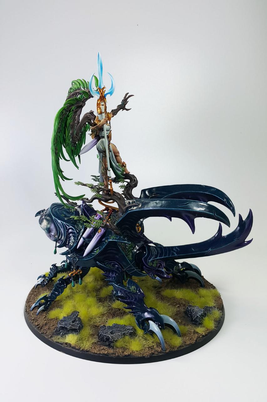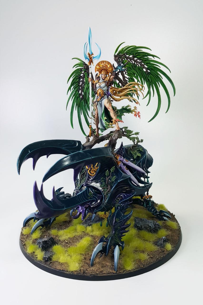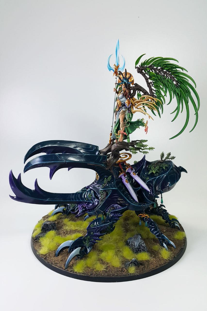 알라리엘은 과거 워해머 판타지(Warhammer Fantasy) 당시에는 하이엘프의 여제였습니다. 워해머 세계관에서의 하이엘프 왕조는 '불사조 왕(Phoenix King)'이라는 형태로 왕이 엄연히 존재하나, '영원의 여왕(Everqueen)'이 또한 존재하여 공동의 통치를 하게됩니다.
