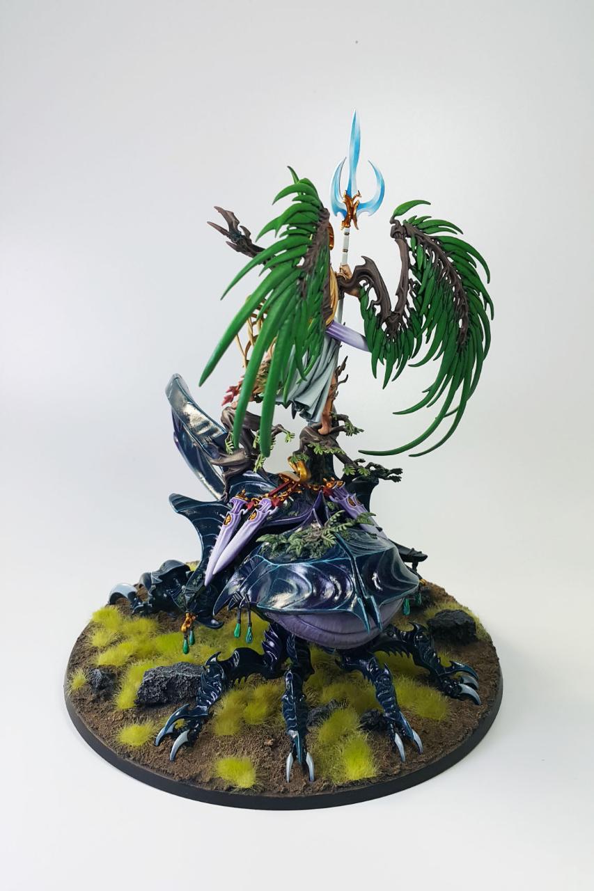 알라리엘이 전장에 나설 때엔, '쿠르노스의 창(Spear of Kurnoth)'으로 무장하고 살아있는 공성추라고 불리우는 워드로쓰 풍뎅이(Wardroth Beetle)에 오릅니다.