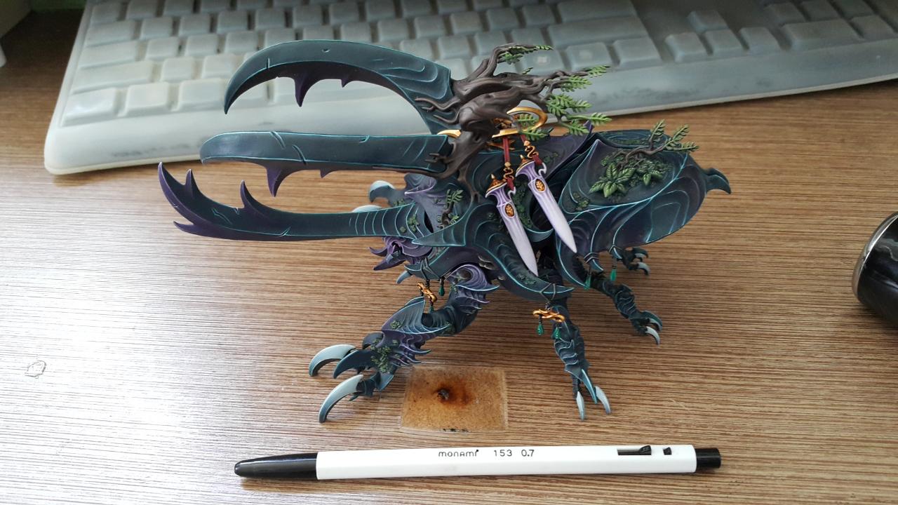 풍뎅이 또한 워해머 모형 치고는 상당히 거대한 편인데, 이 비교사진을 직을 당시엔 유광 작업을 따로 하지 않아서 지금과는 다른 느낌을 받으실 수 있습니다.