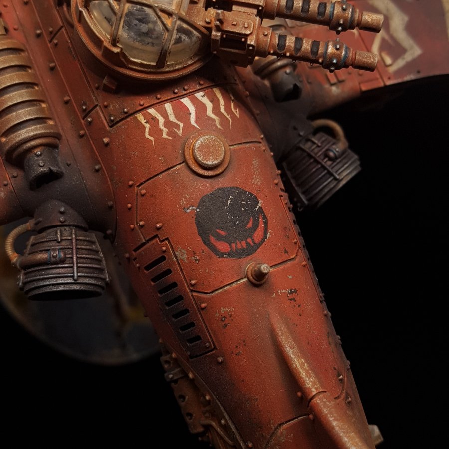 불꽃 문양은 워해머 판타지의 'Ard boyz라는 오크들의 깃발 문양을 따 왔습니다. 프리핸드로 작업했습니다.