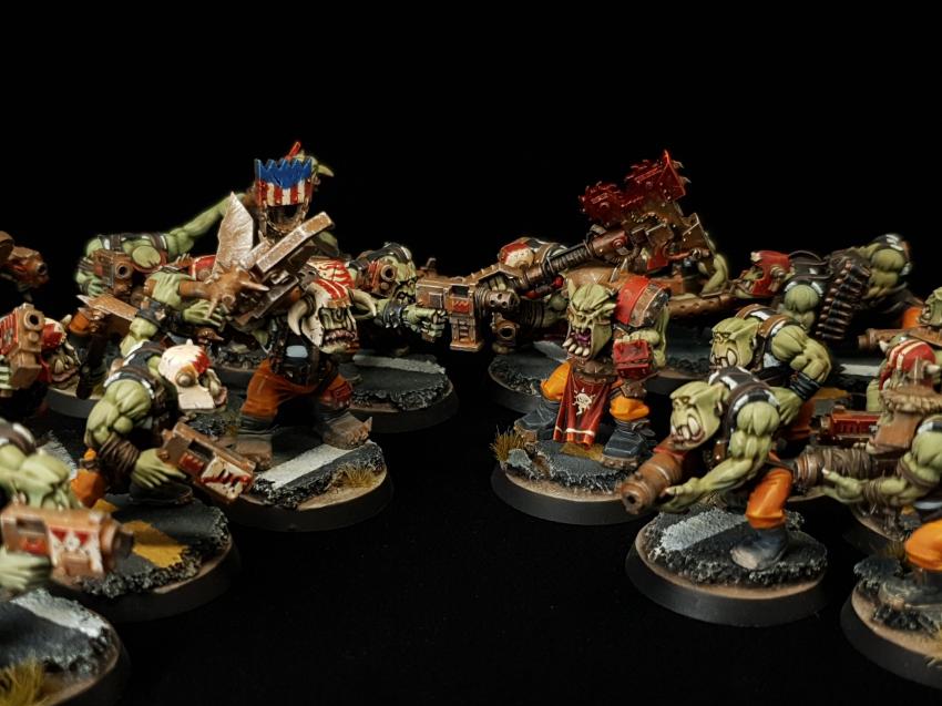 지난 번에 작업한 오크 보이즈 무리(Boyz Mob)들의 리더인 보스 놉(Boss Nob) 둘을 작업했습니다.