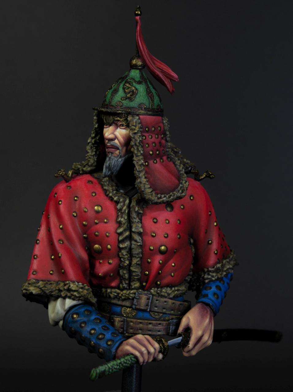 공명님이 멋지게 도색하신 작품이 있어서, 저는 러시아 피터대제 인류학 민속학박물관(https://news.naver.com/main/read.nhn?mode=LSD&mid=sec&sid1=103&oid=003&aid=0002409752)에 보관돼어 있는 두정갑투구를 참조하여 도색하였습니다,투구가 너무 멋져서 고증에 않맞더라도 도색해보고 싶었습니다^^ 뒤의 화살과 화살집?은 붙이지않고 완성하였습니다