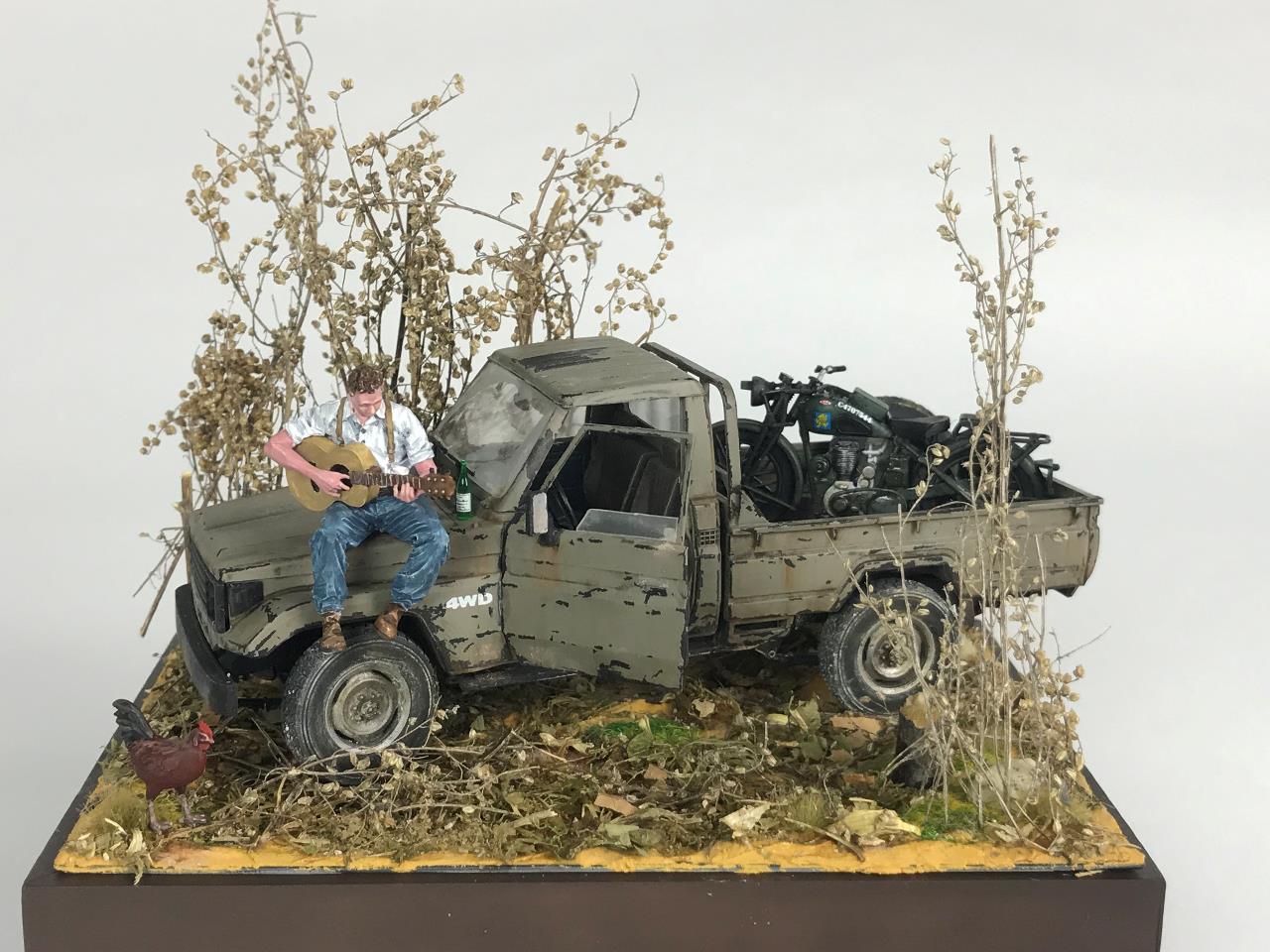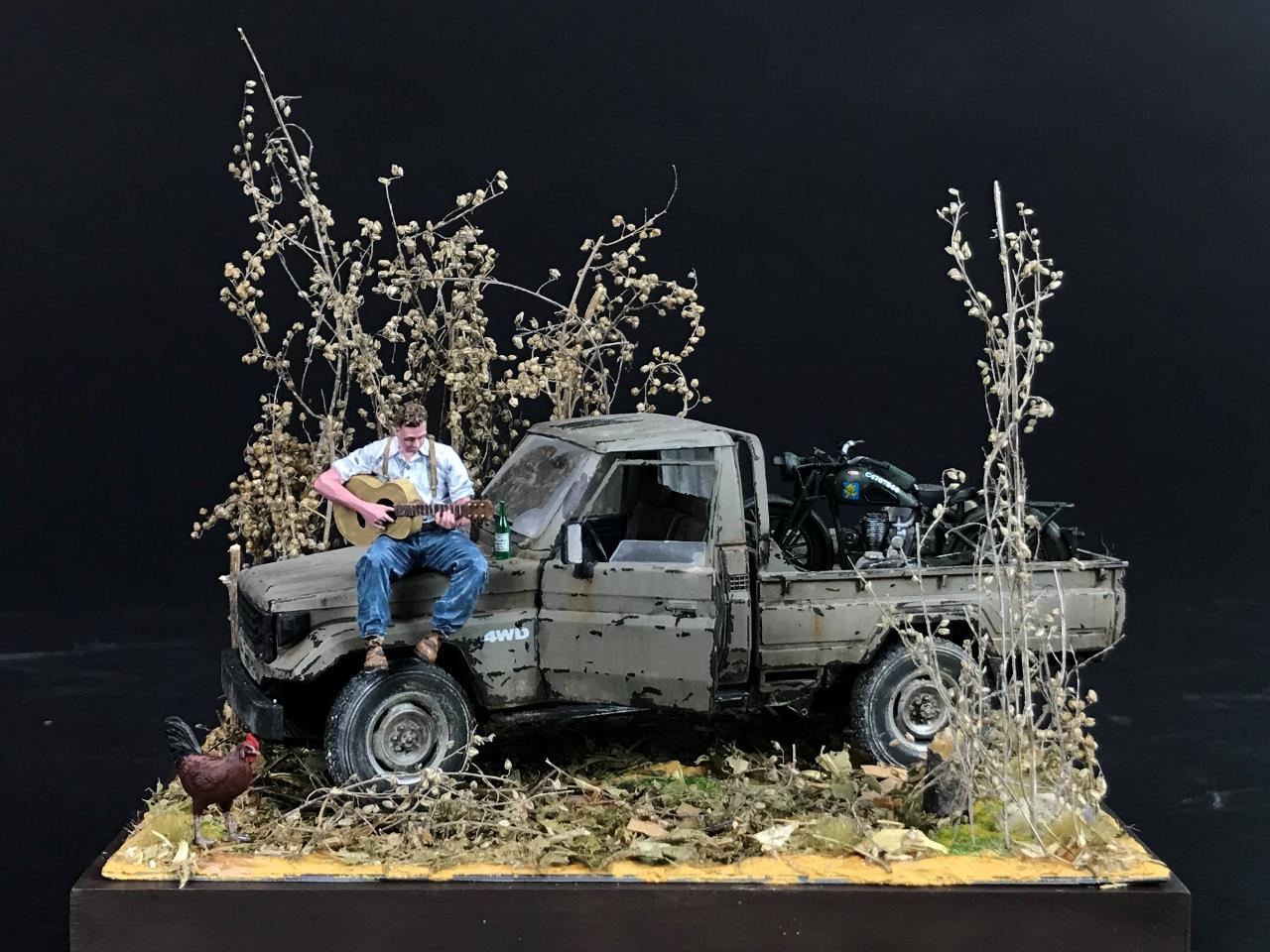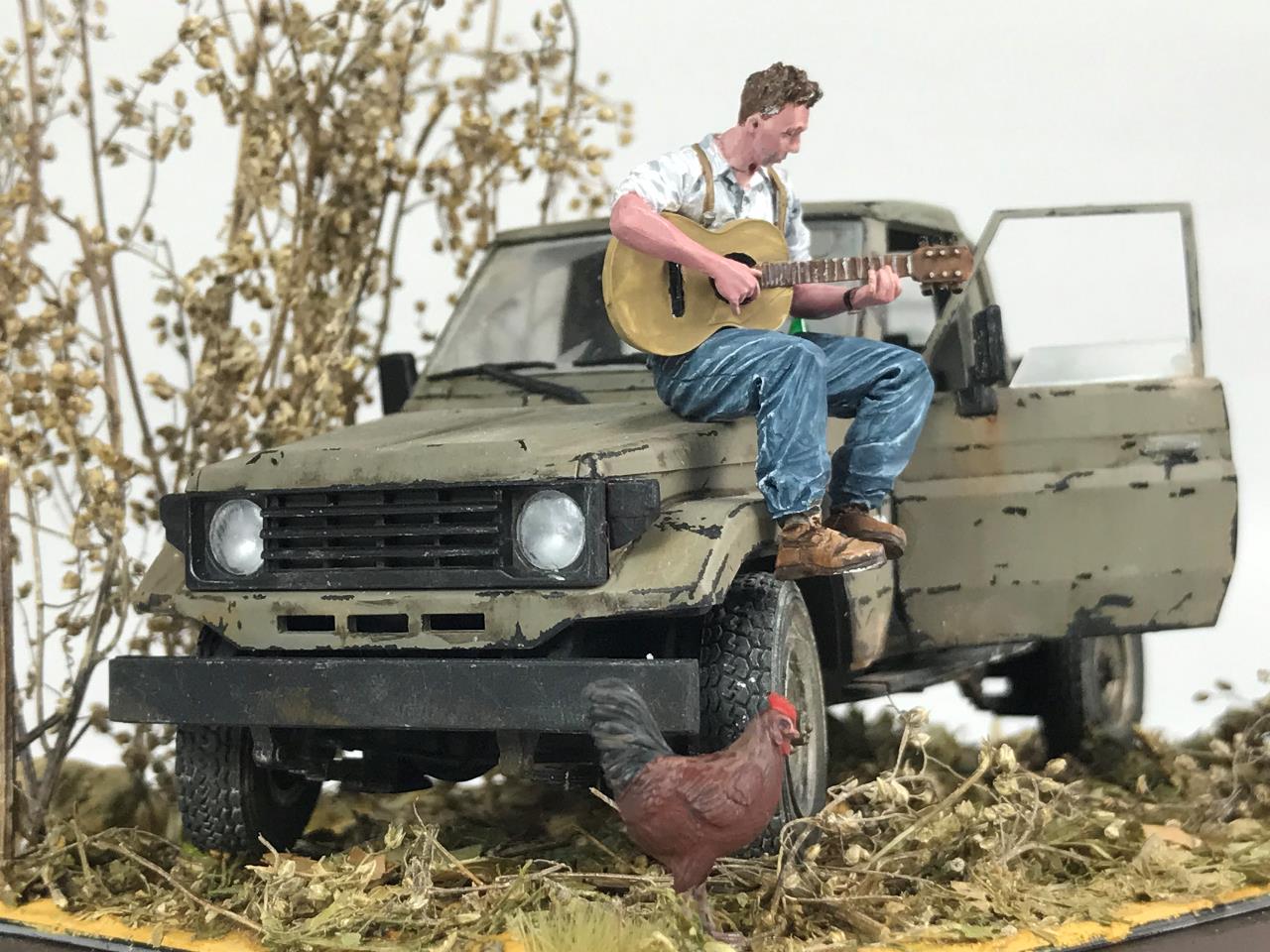 이번 디오라마는 좋아하는 기타선율에 맞춰 여유를 즐기는 어느 노년에 가까워진 남성을 표현해 보았습니다.