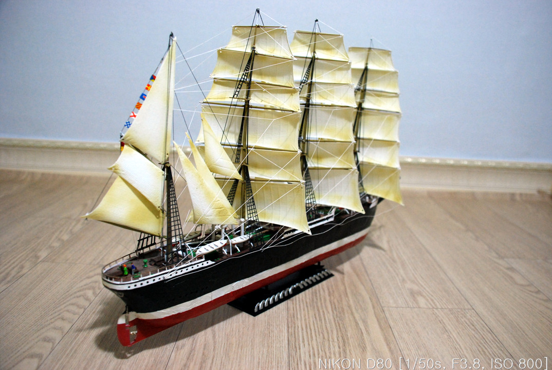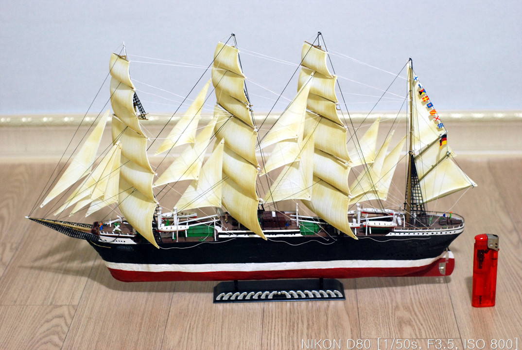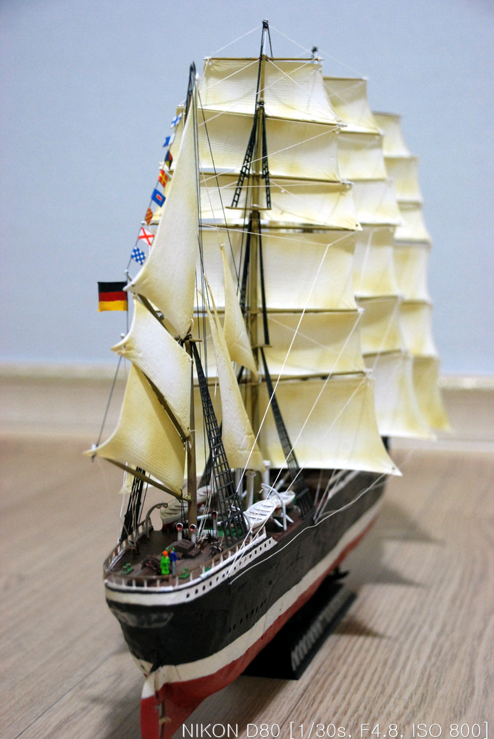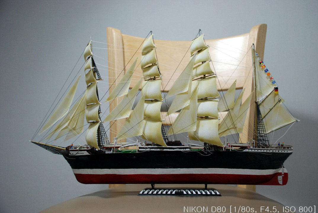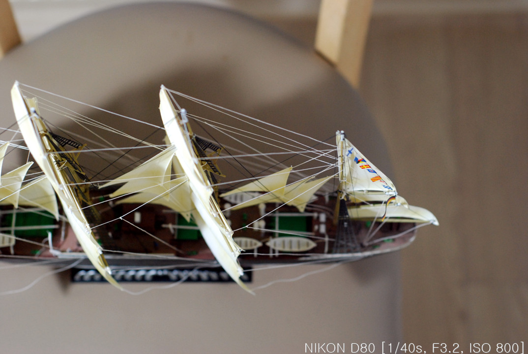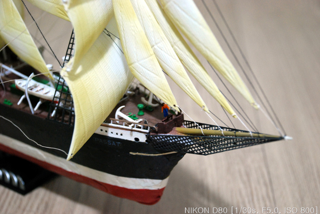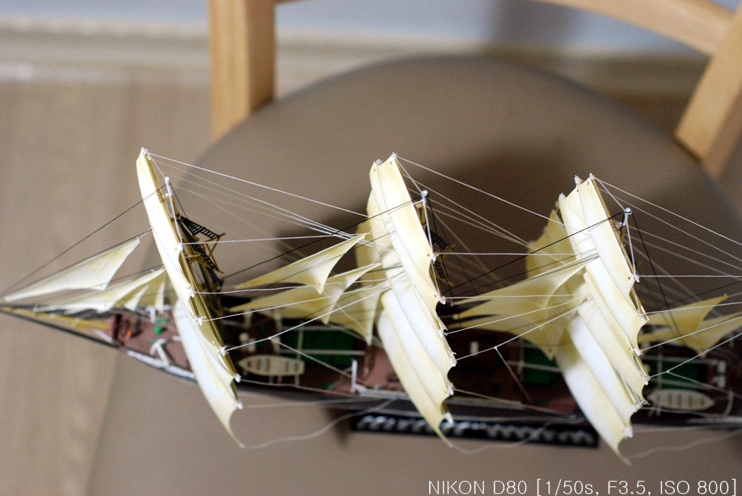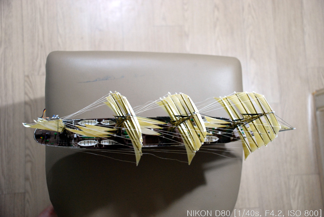 그래서, 작업을 하다 말다, 하다 말다 하다 보니 언 3년이란 시간이 지나서 완성을 하게 됐습니다. 핀셋을 이리저리 움직여가며 장애물(?)들을 피해 돛을 다는 작업을 드디어 끝냈습니다.