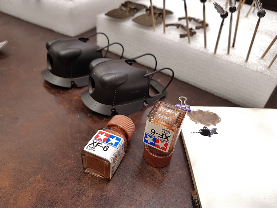 블랙 서페 올린 표면에 에나멜 코퍼를 붓으로 거칠게 치덕치덕 찍어 발라줍니다.