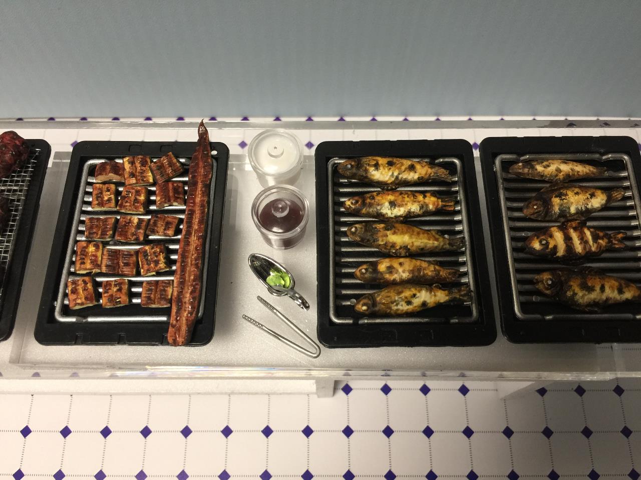 장어, 생선구이 / 생선눈알은 가는 세필붓에 흰색 아크릴물감을 찍어 표현했습니다.
