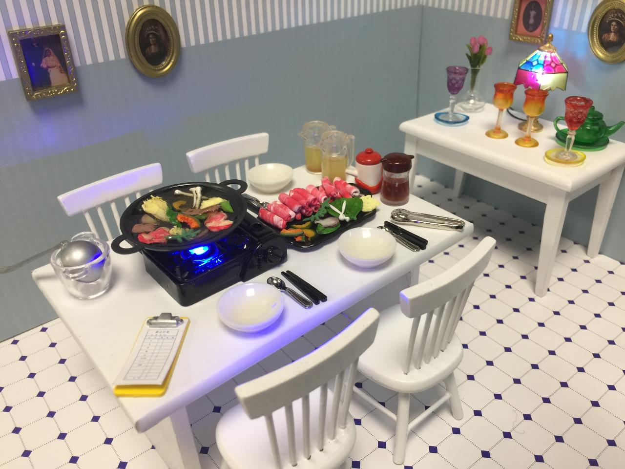 (미니어쳐가스렌지에 LED를 삽입하여 효과를 내봤습니다. 가스렌지가 작아서 LED가 들어가지를 않아 사포로 좀 얇게 갈아내고 겨우 끼워 놓았습니다.)